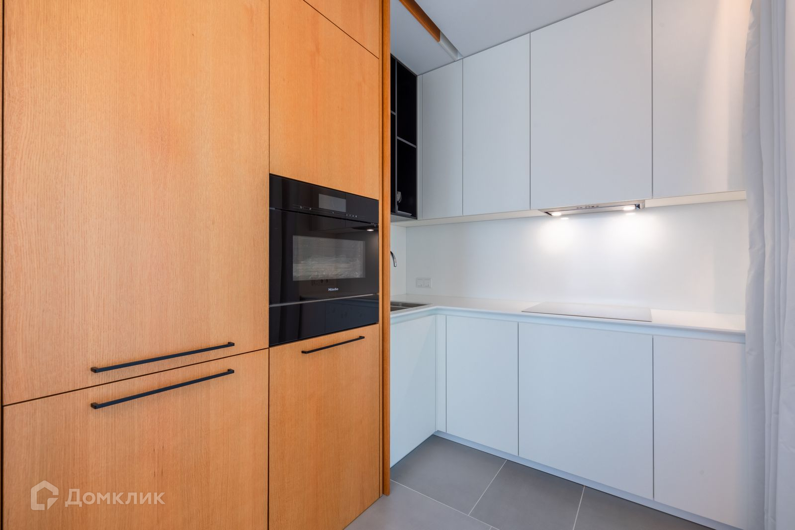 - немецкая кухня под заказ с выдвижной дверью, когда нужно прикрыть зону готовки,