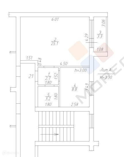 Жилая площадь 25.1 м2