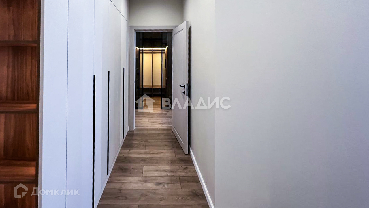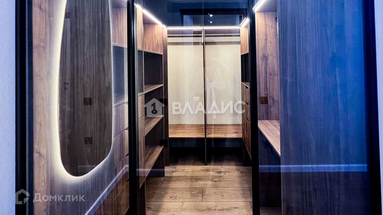 - В квартире имеются две вместительных гардеробных, встроенная кухня и бытовая техника, сплиты