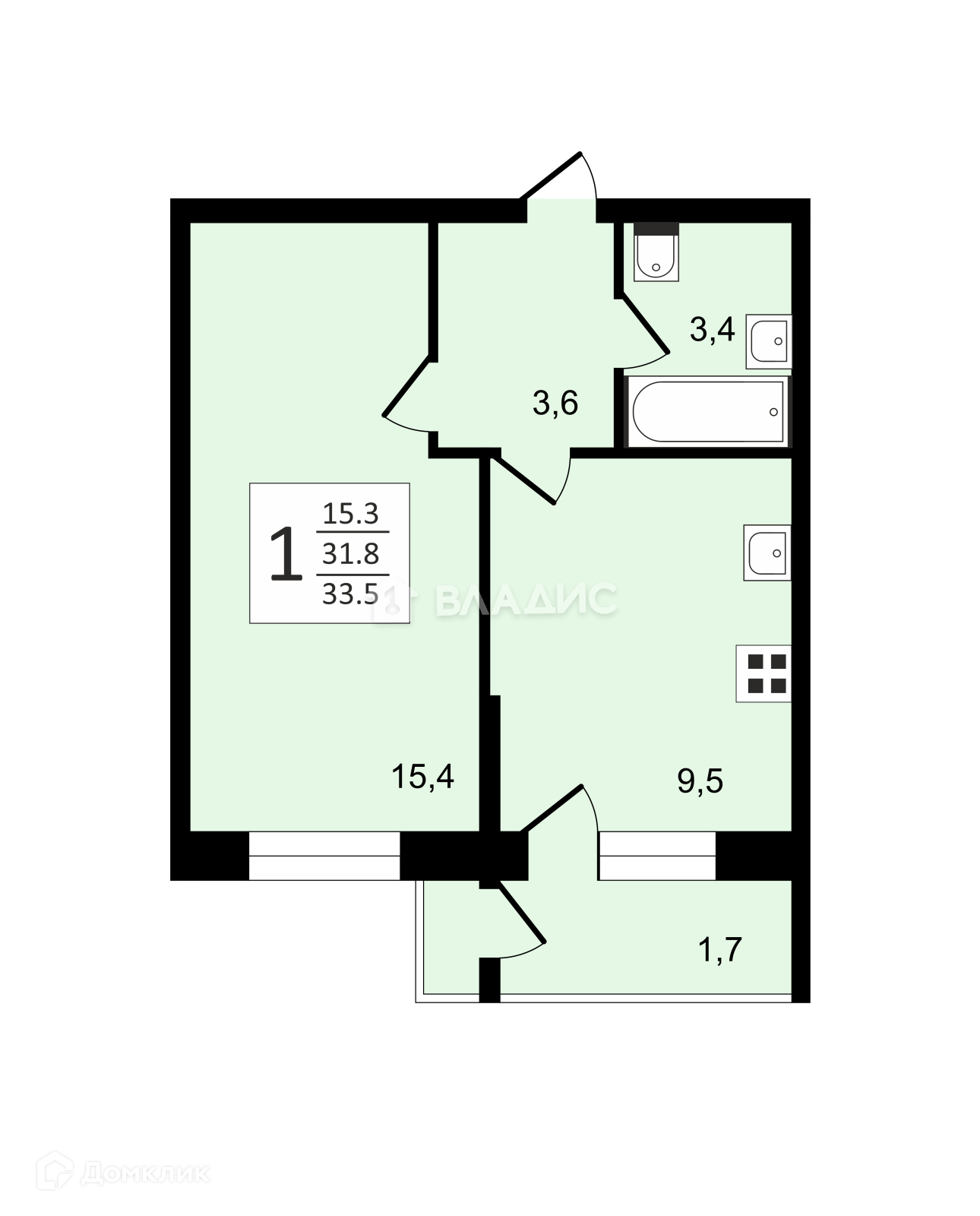 Общая площадь 31.8 м2