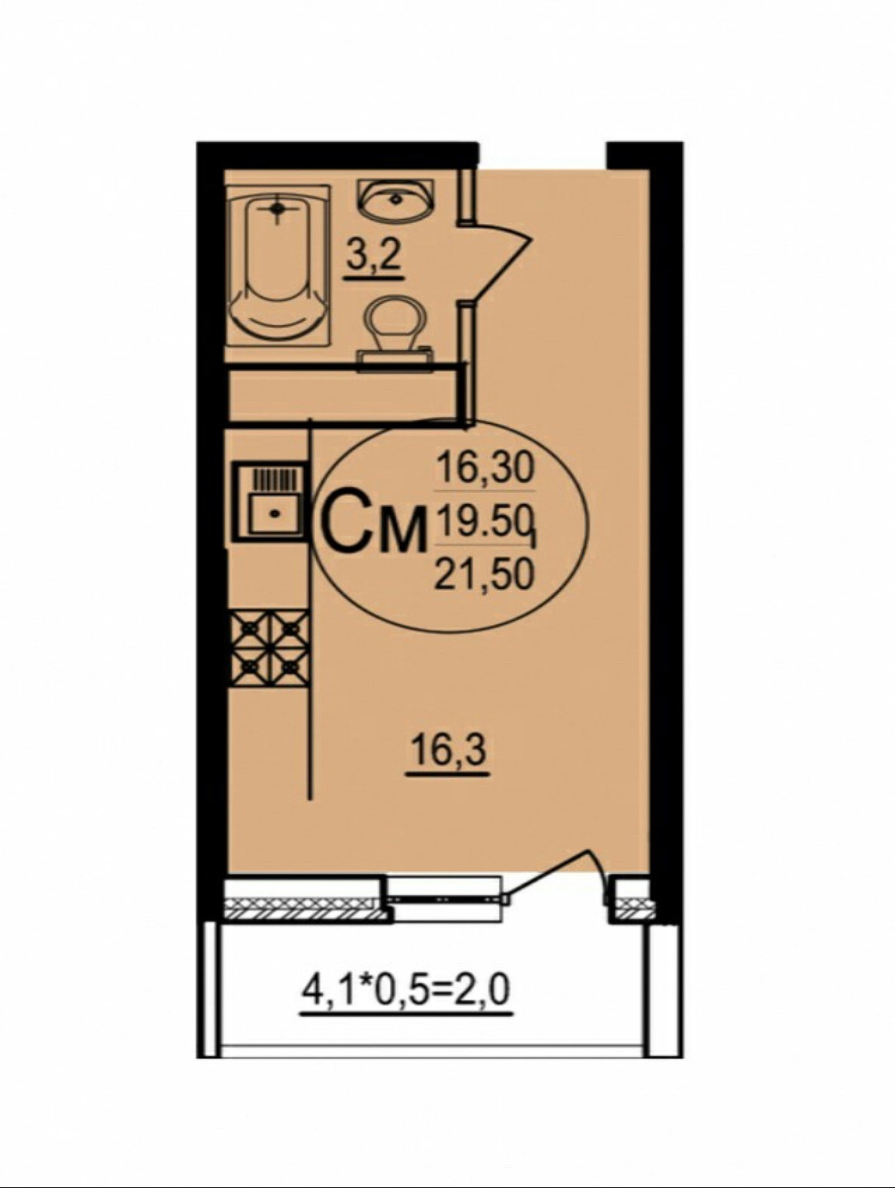 Общая площадь 19.6 м2