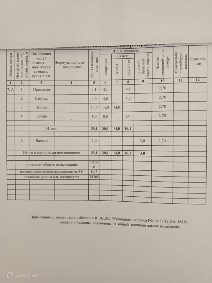 Общая площадь 33 м2