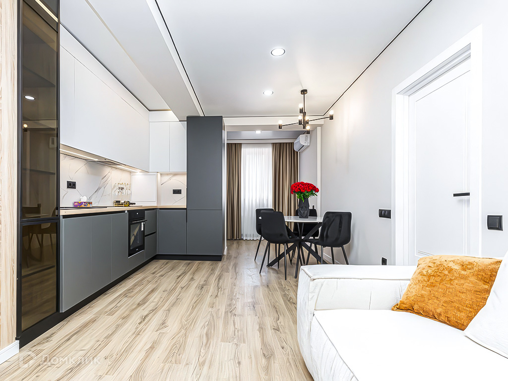 Ухоженная придомовая территория с детскими площадками, спортивной зоной с тренажерами, прогулочными зонами, беседками для отдыха, подземным паркингом. Первый этаж занимает коммерция.