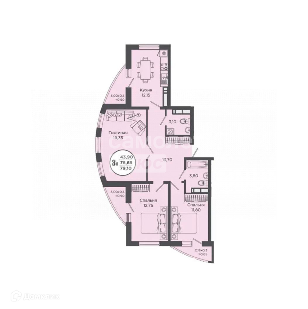 Общая площадь 79.1 м2