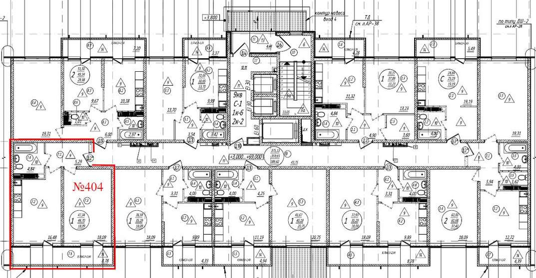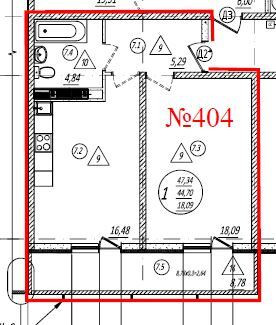 Общая площадь 44.3 м2