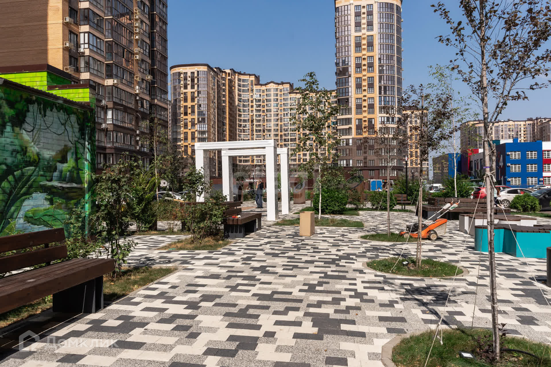 На районе есть абсолютно все- кафе, рестораны, кофейни, крупные сетевые магазины, леруа мерлен и гипермаркет. Рядом новый торговый центр.