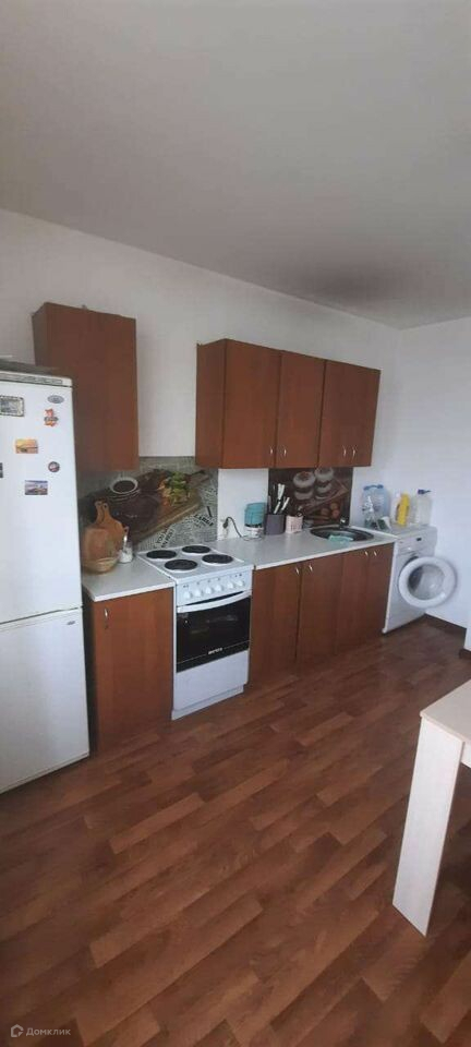 Квартира с ремонтом от застройщика, остаётся кухонный гарнитур, спальный гарнитур, диван, 2 кресла, стиралка.
