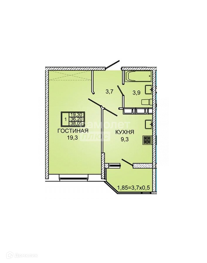 Общая площадь 35.3 м2