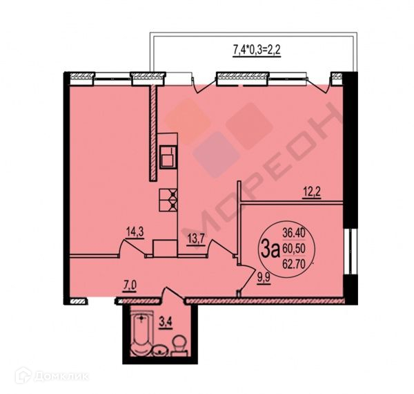 Общая площадь 58.5 м2