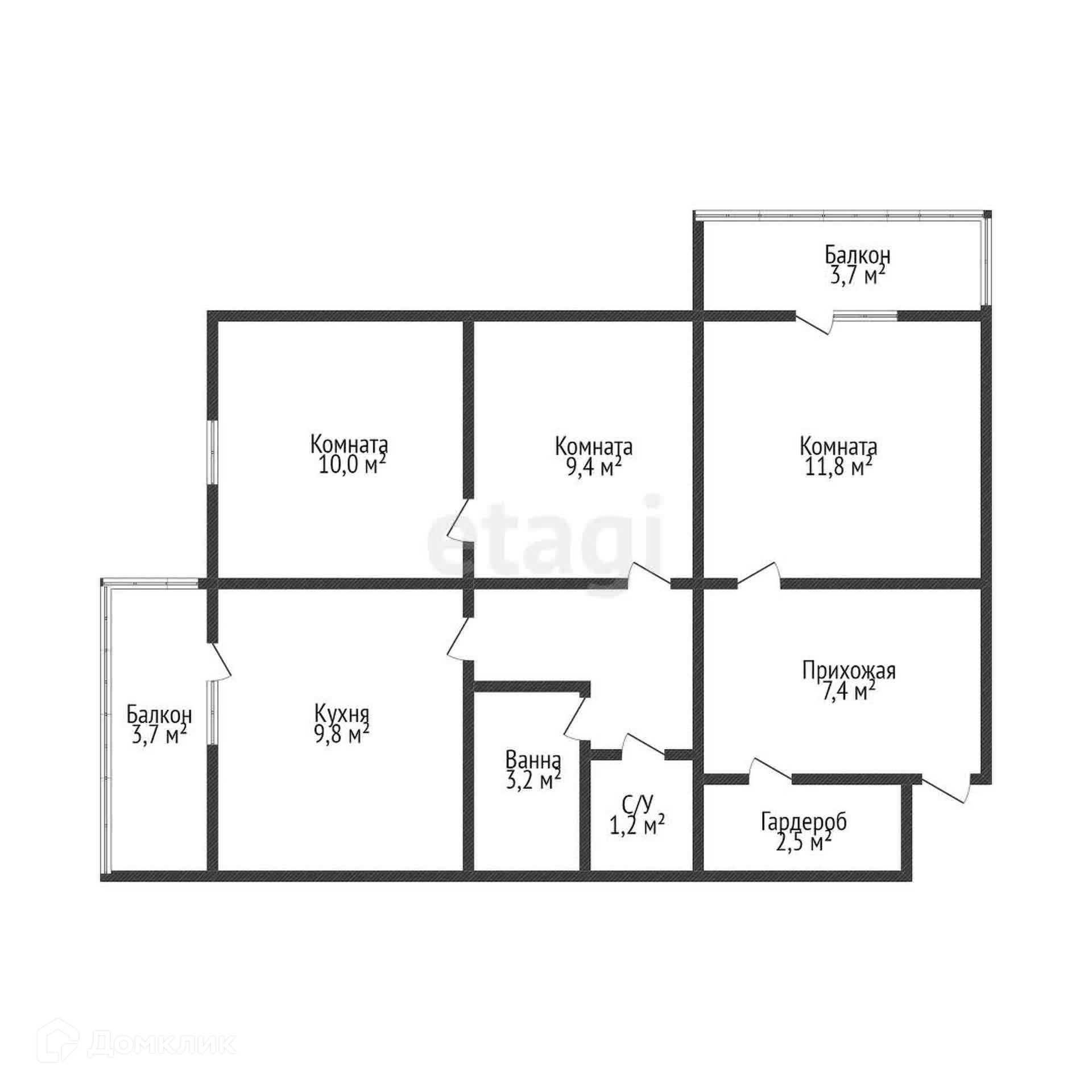 Общая площадь 59.6 м2