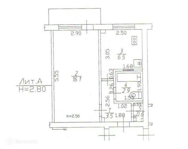 Высота потолков 2.5 м