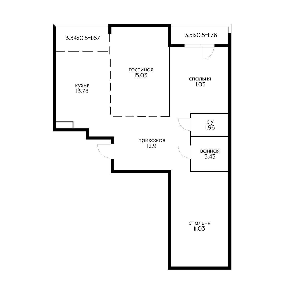 Площадь кухни 13.78 м2
