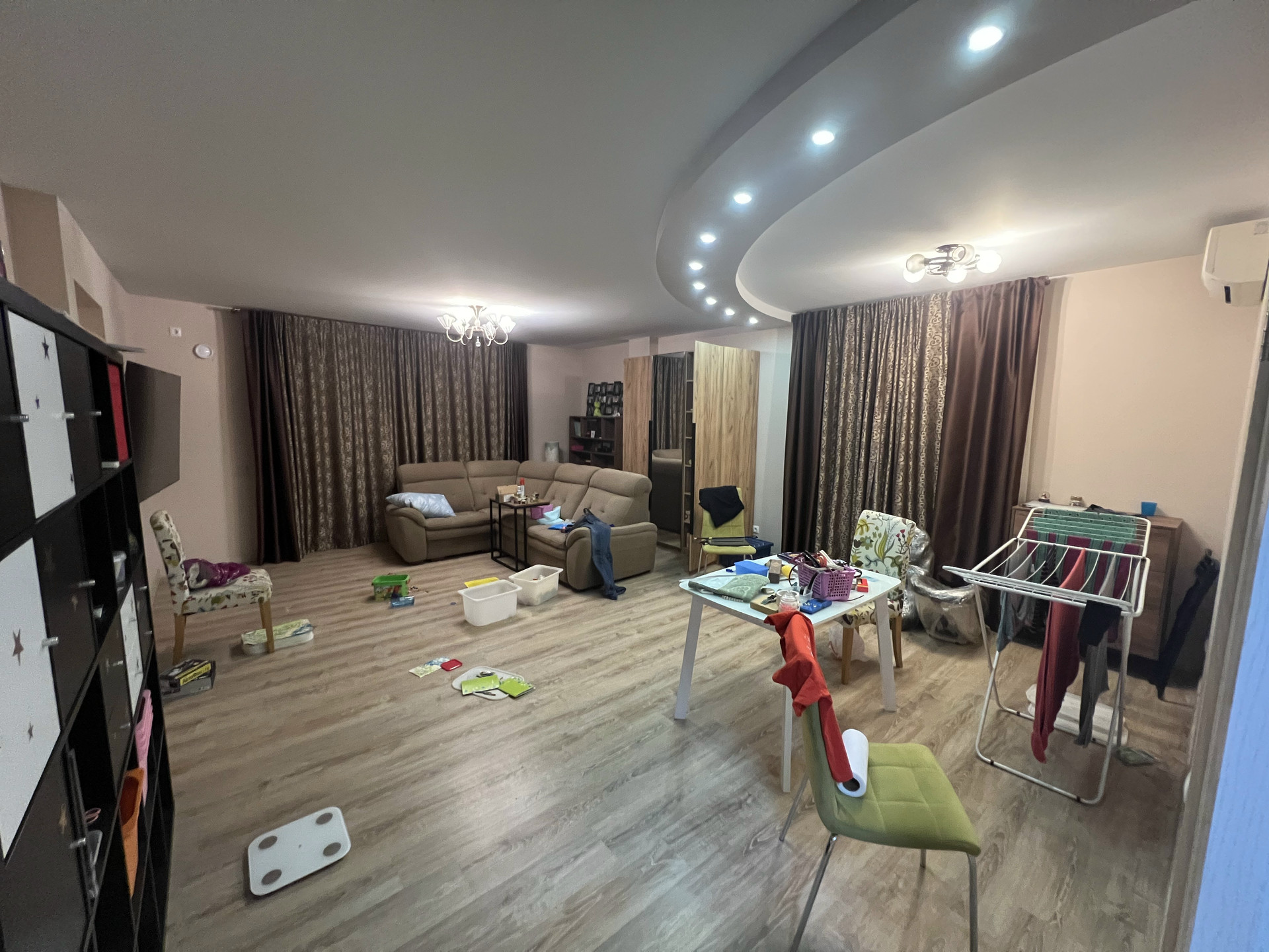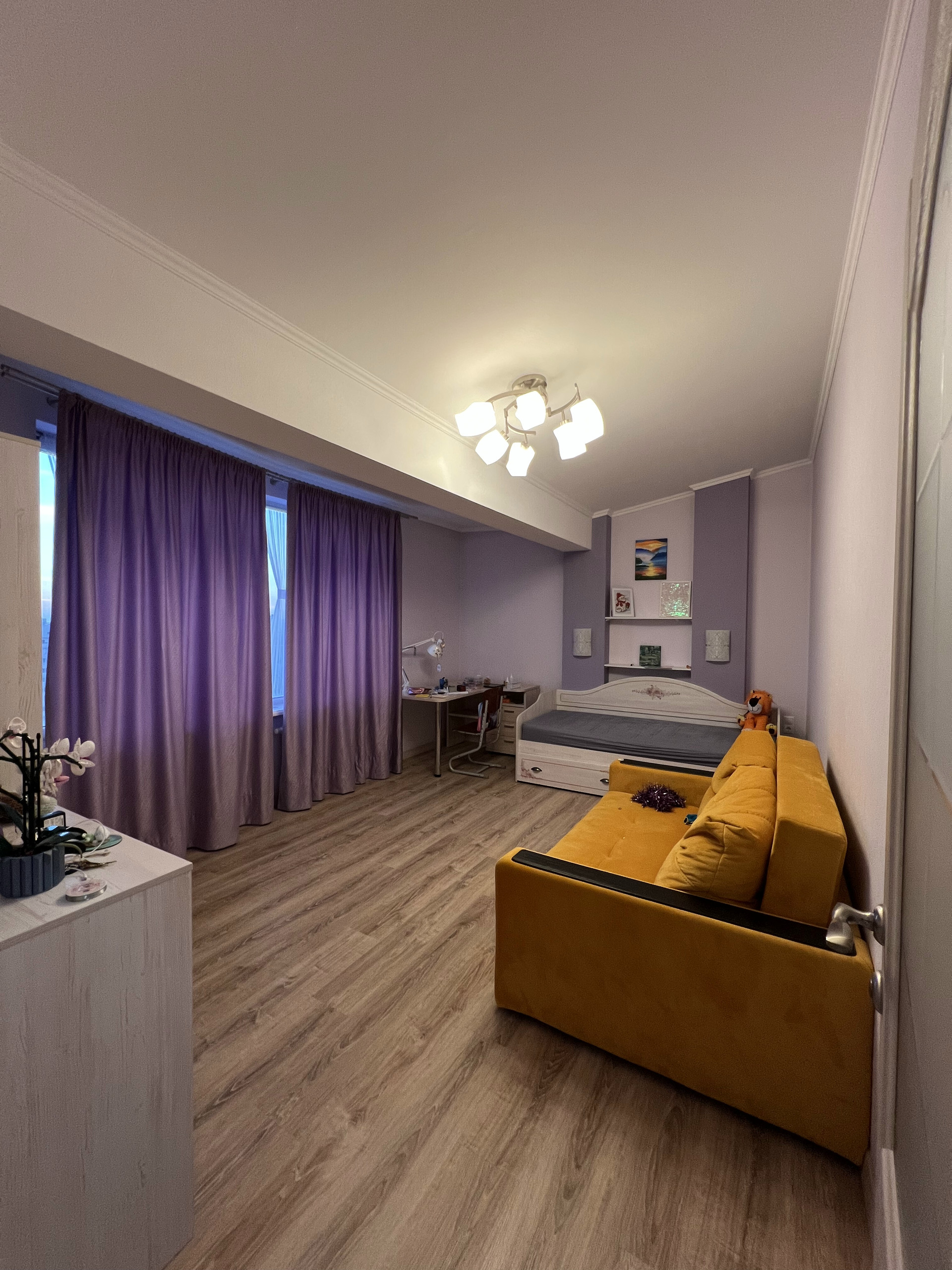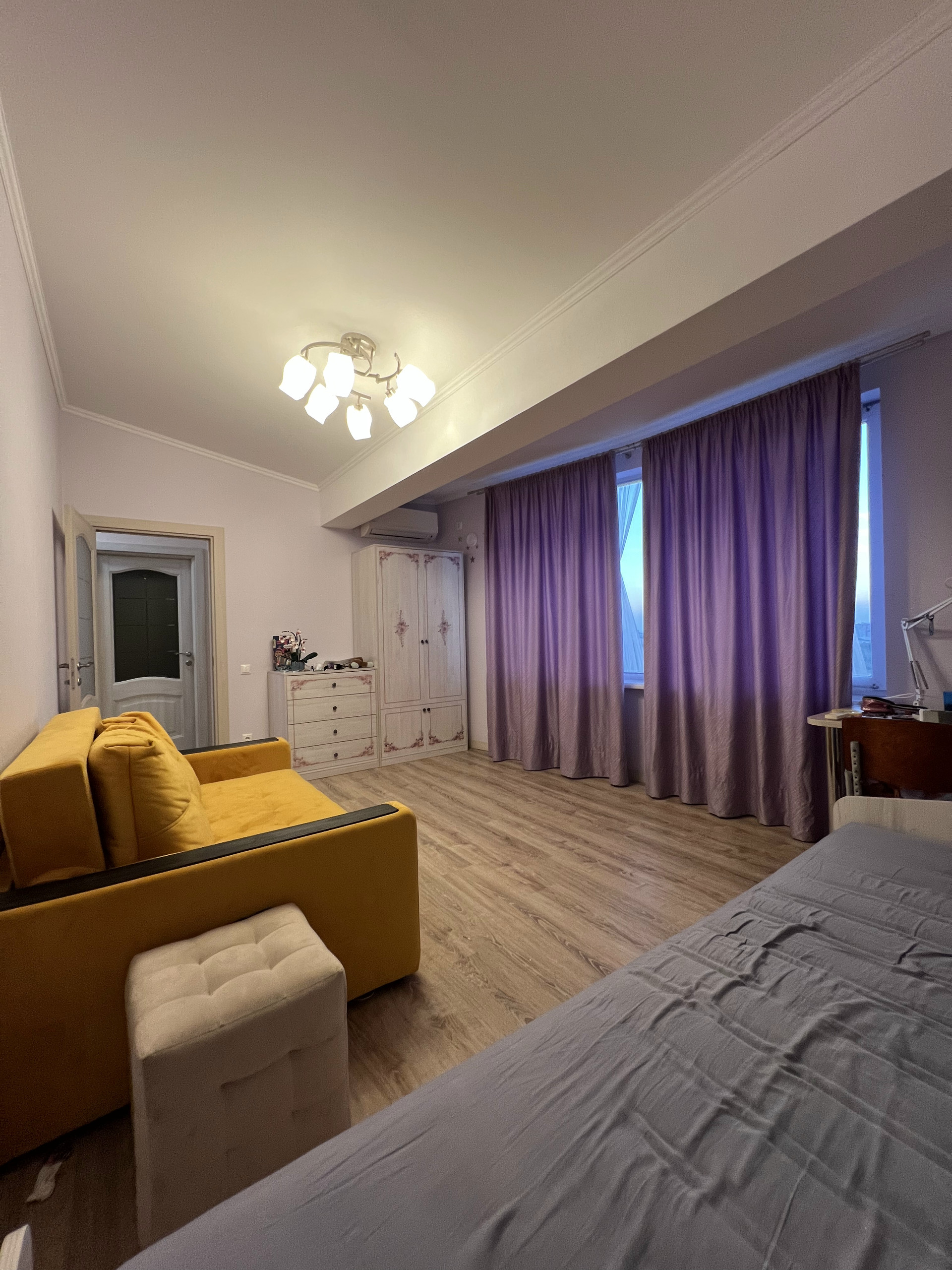 Четыре спальни изолированы, помимо них есть большая гостиная, рабочий кабинет, удобная гардеробная, большая кладовка.