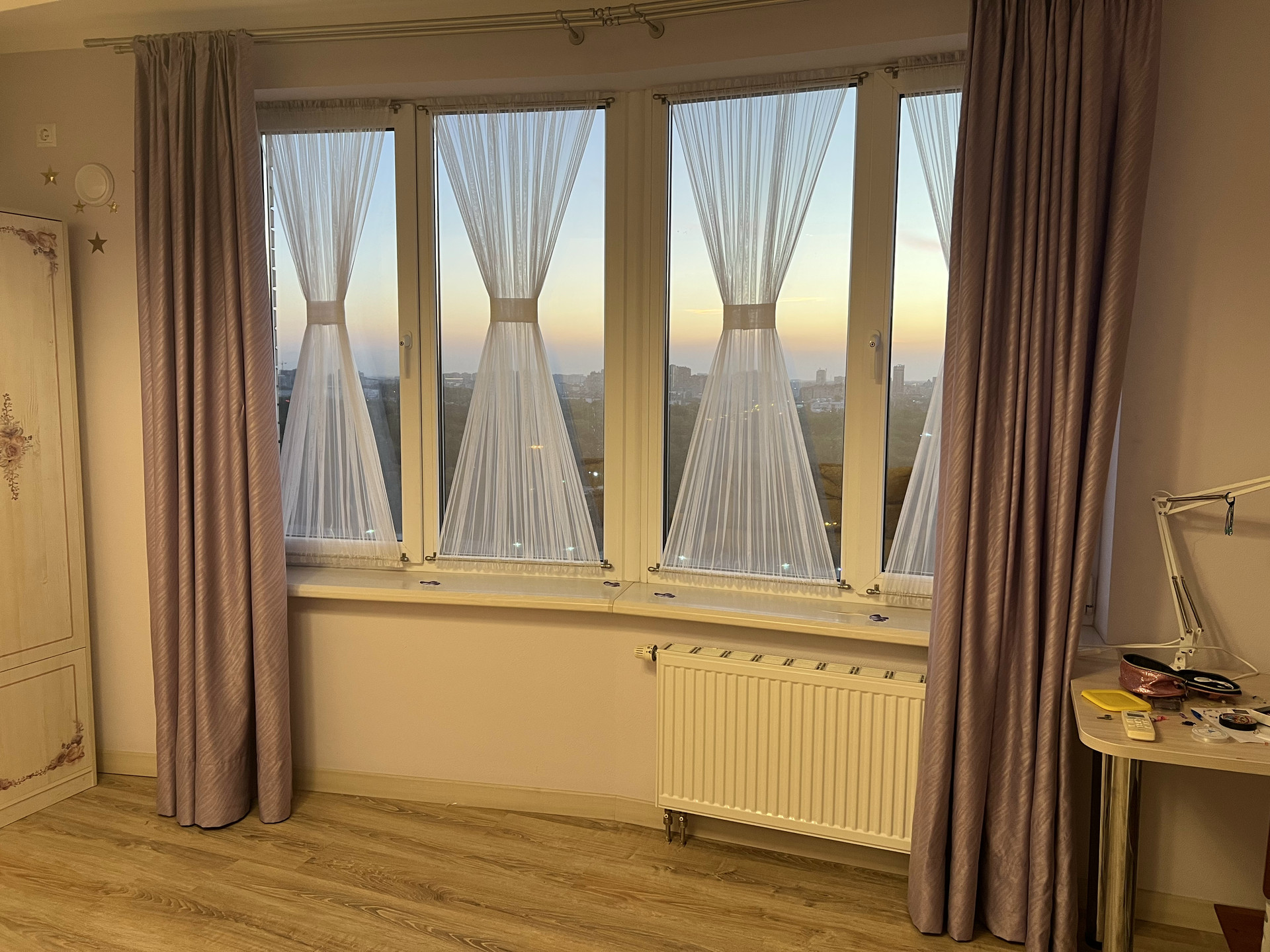 Есть балкон с красивым видом на Чистяковскую рощу и закаты.