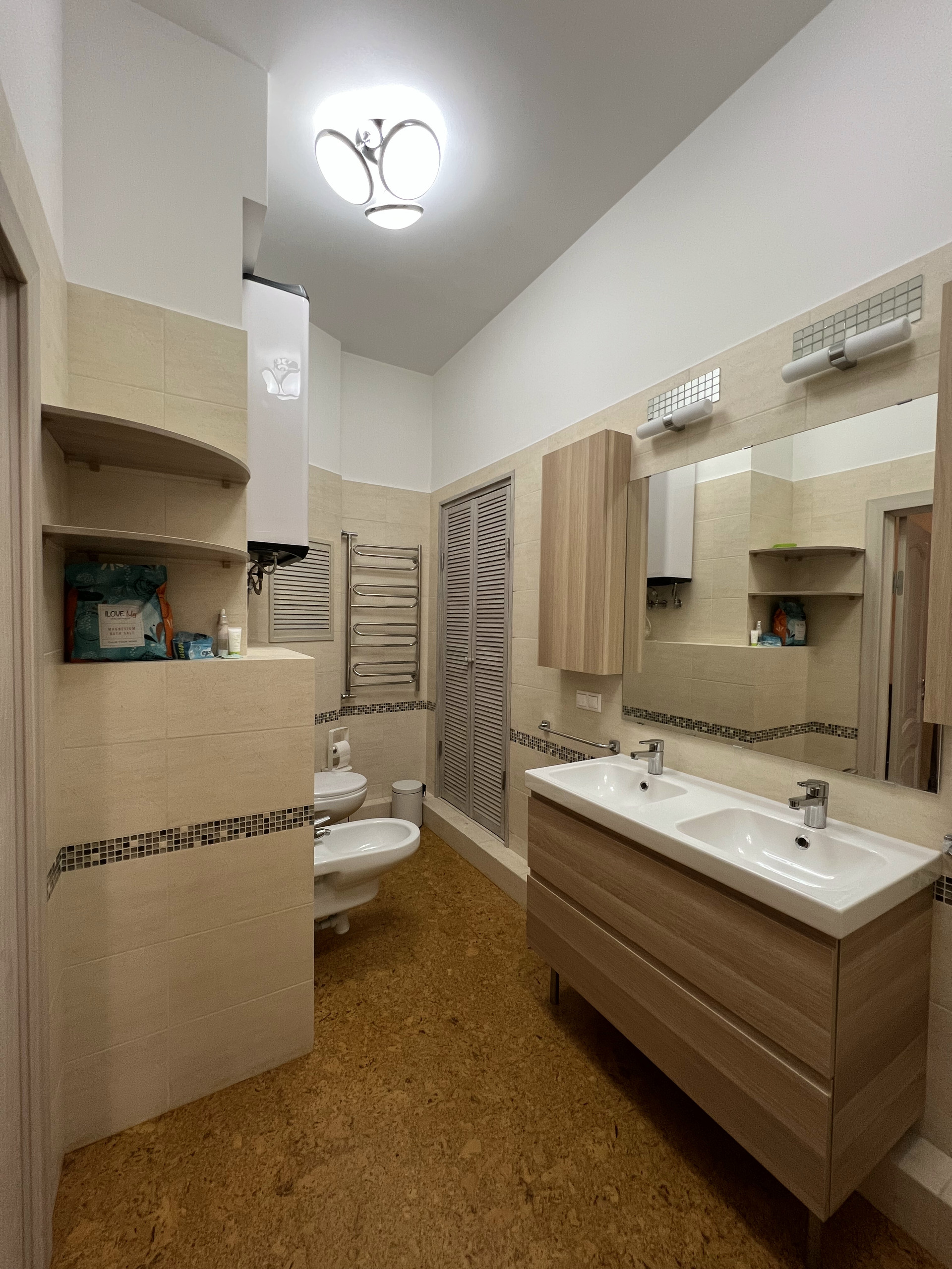 В квартире есть санузел, душевая, а также ванная совмещенная с санузлом.