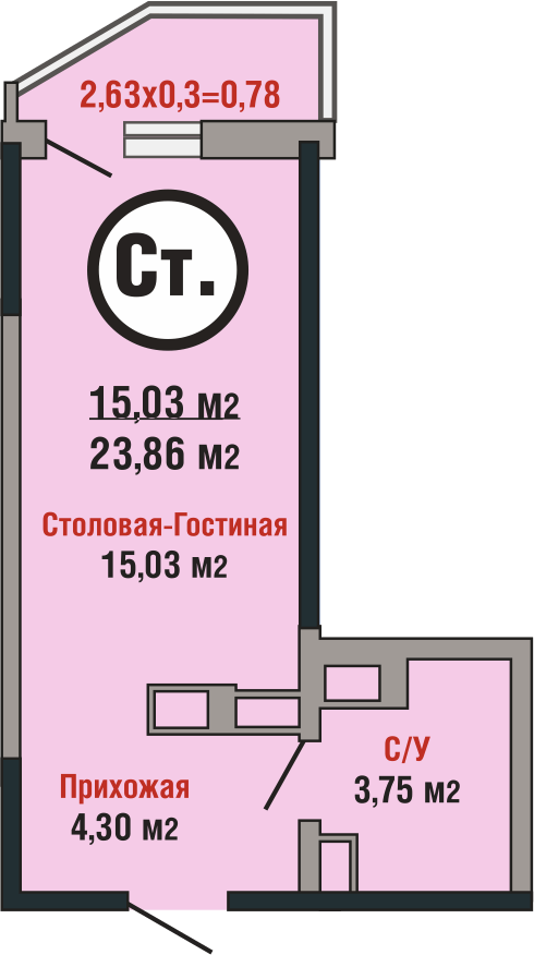 Общая площадь 23.1 м2
