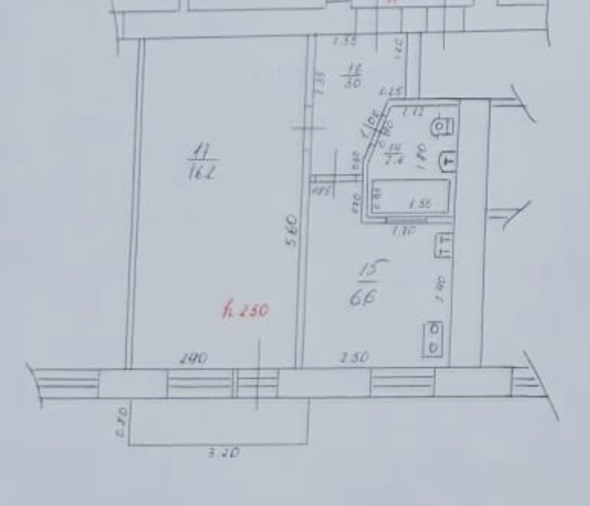 Площадь кухни 6.6 м2