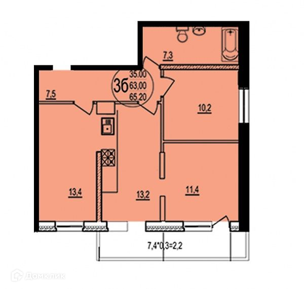 Жилая площадь 35 м2