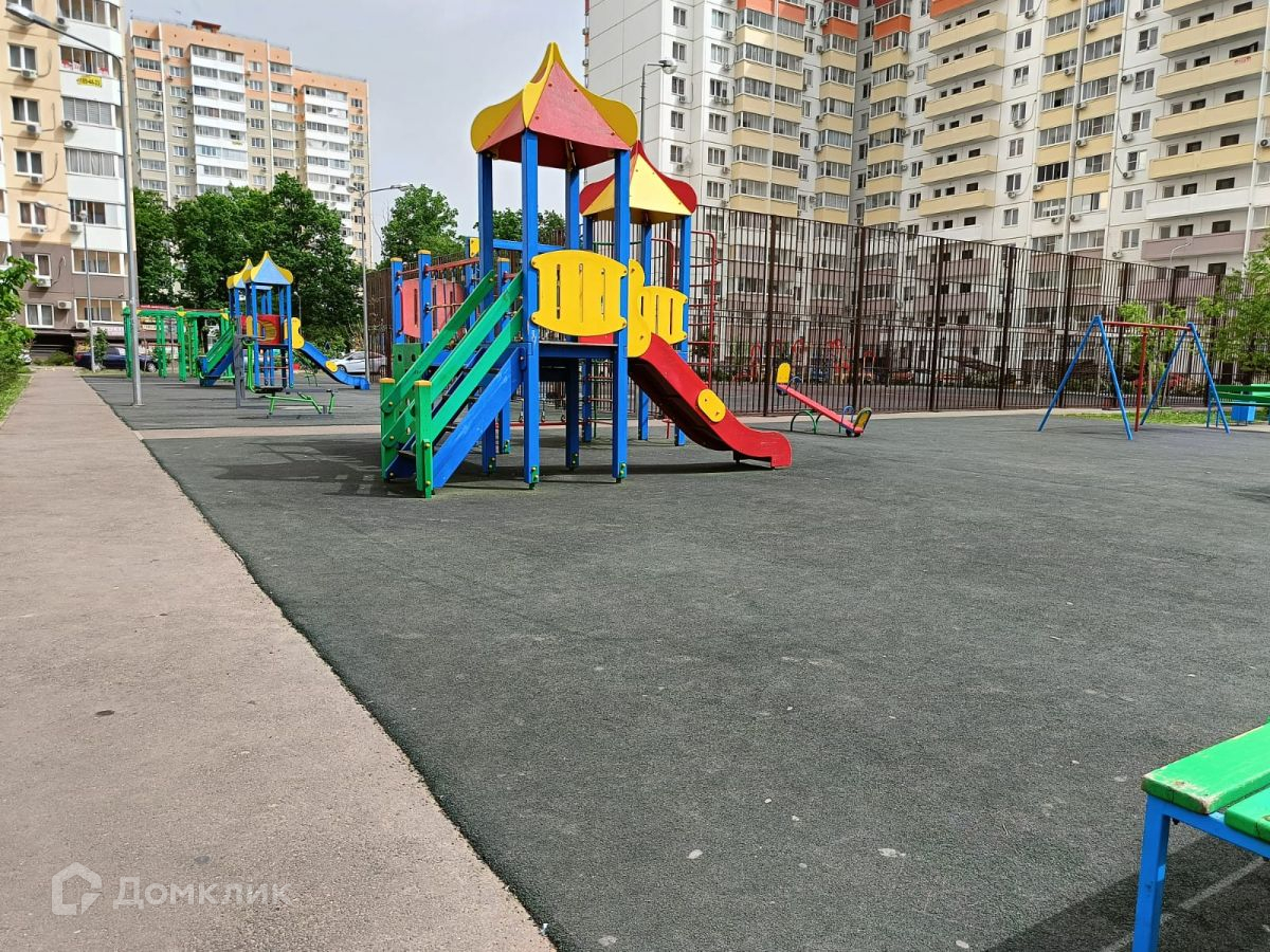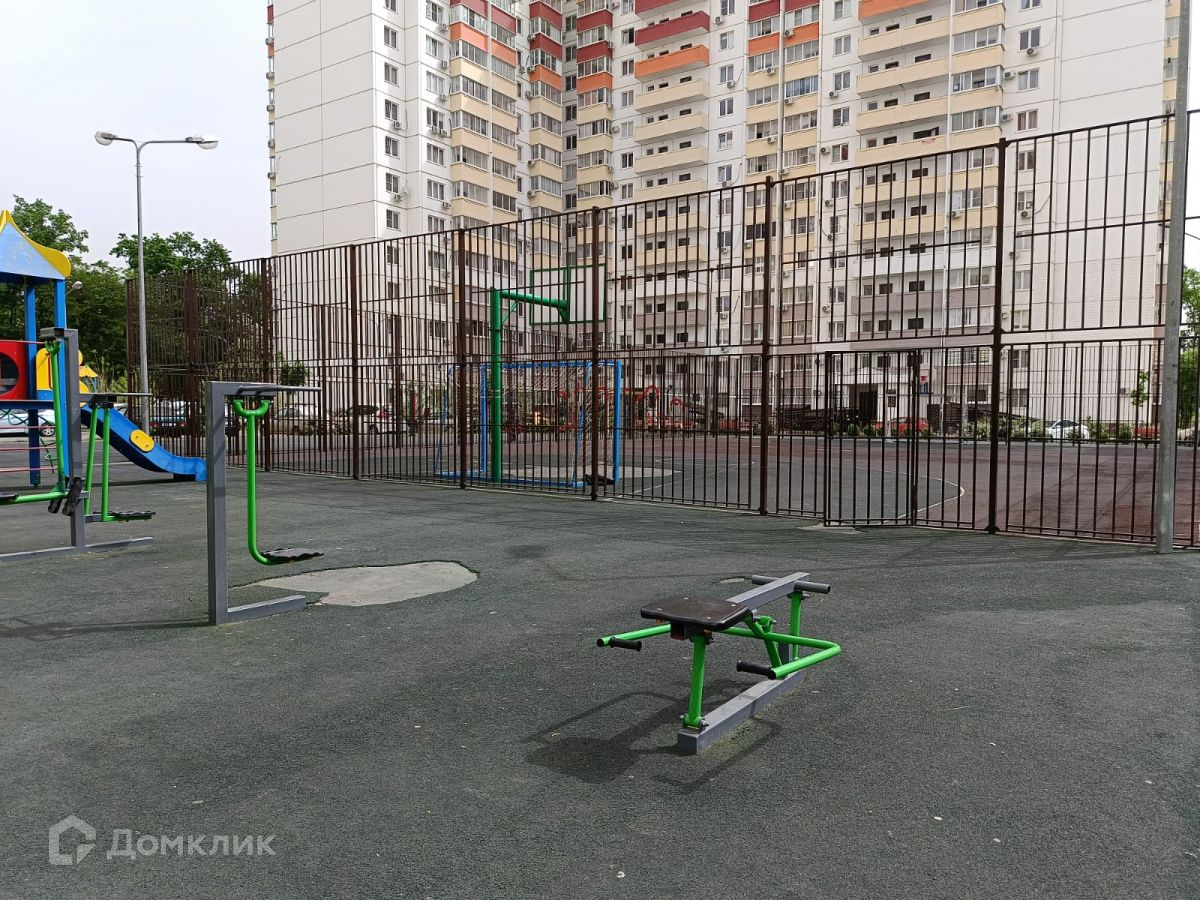 Придомовая территория полностью благоустроена, во дворе располагаются детская и спортивная площадки и места для паркинга. Неподалеку находится детская спортивная школа.