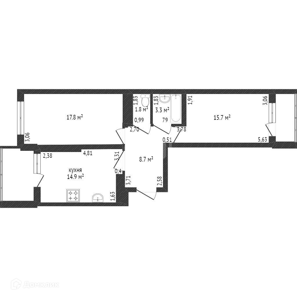 Общая площадь 61.8 м2