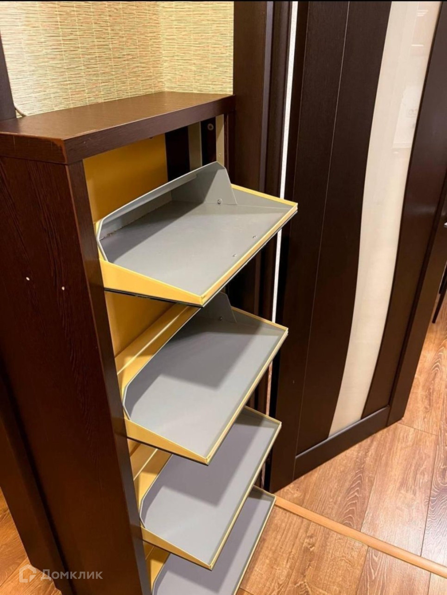 В зале большой двухспальный раскладной диван. Огромный встроенный шкаф на всю стену. Везде окна ПВХ + балкон ПВХ, обшит как изнутри, так и снаружи, внутри отделан бамбуком, имеется встроенный шкаф, подвесная сушилка для белья, полы с подогревом, освещение и т.д.