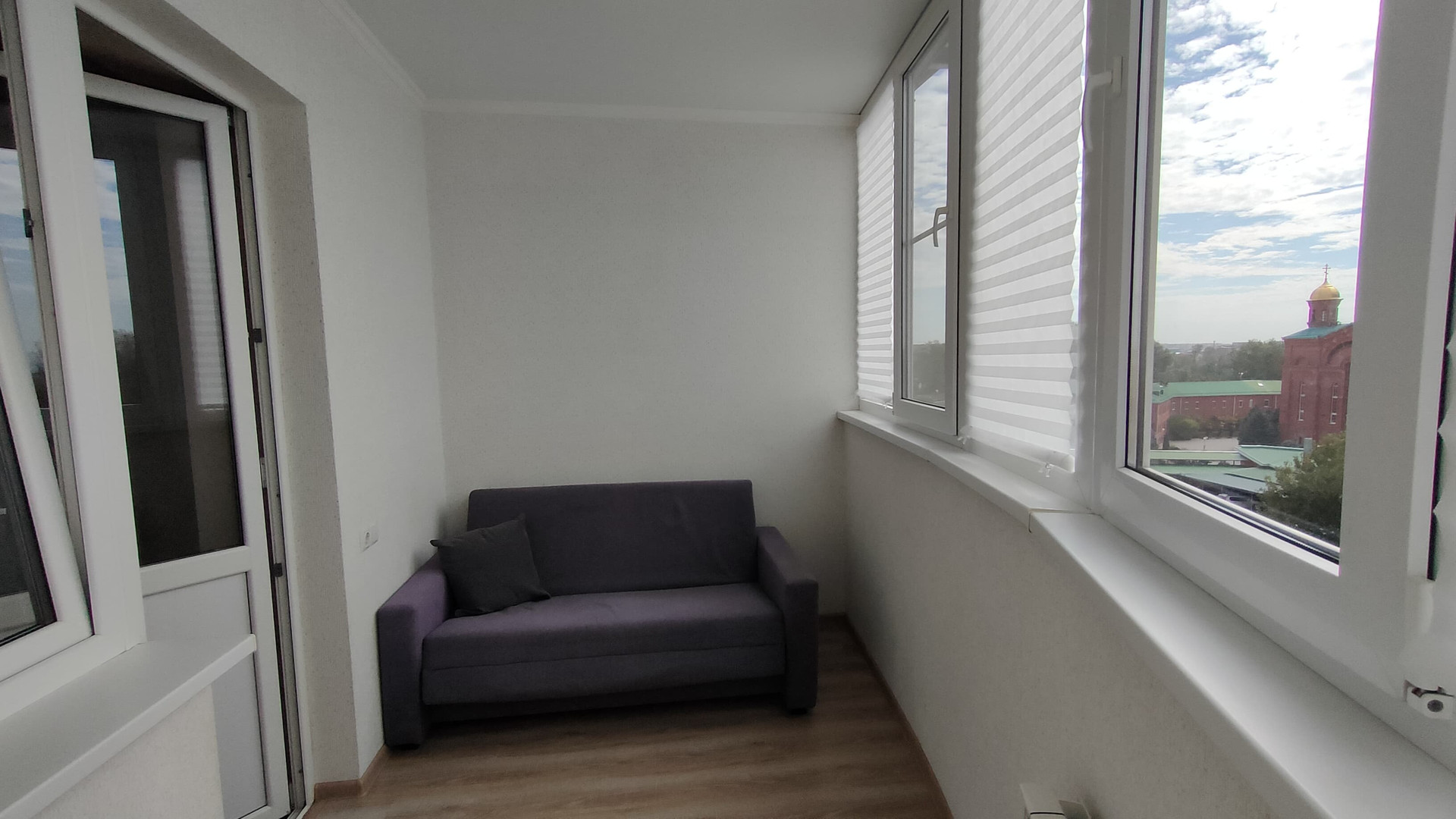 Широкая лоджия, утепленная по всему периметру  напрашивается ее использование как отдельной комнаты  для отдыха или работы.