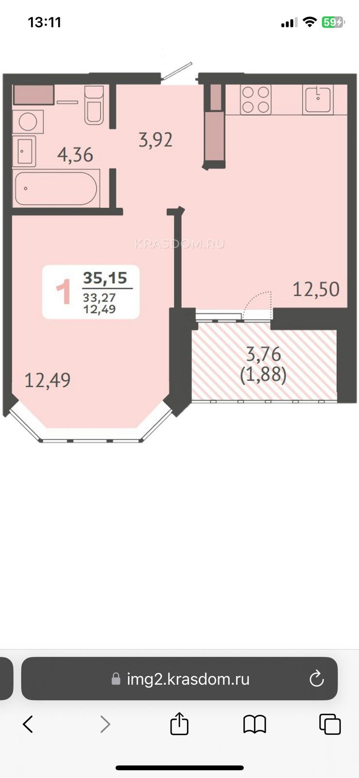 Общая площадь 35.15 м2
