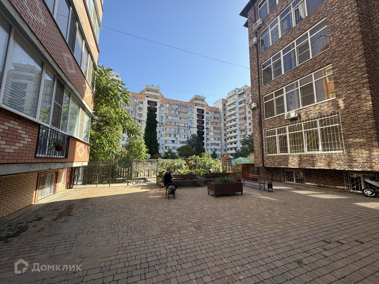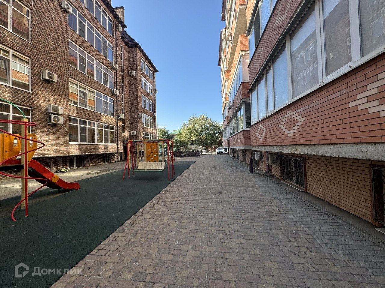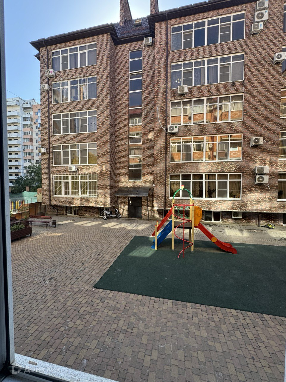 Окна выходят во двор на обустроенную площадку.