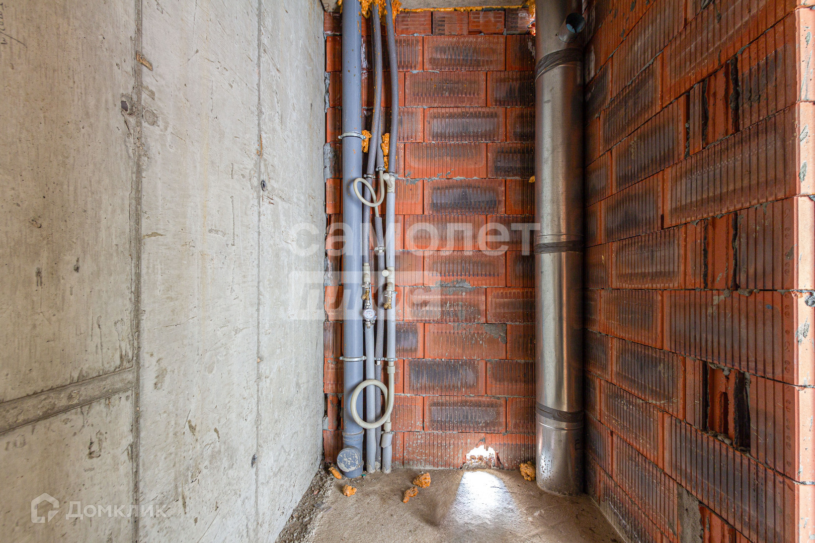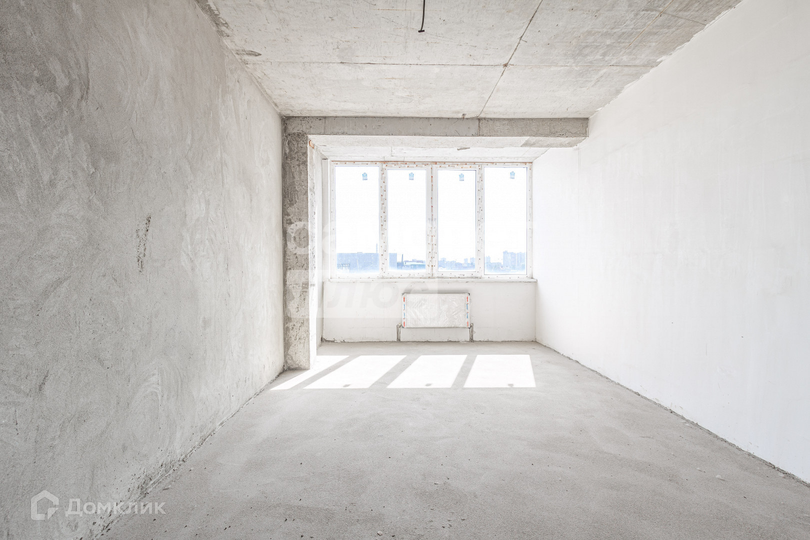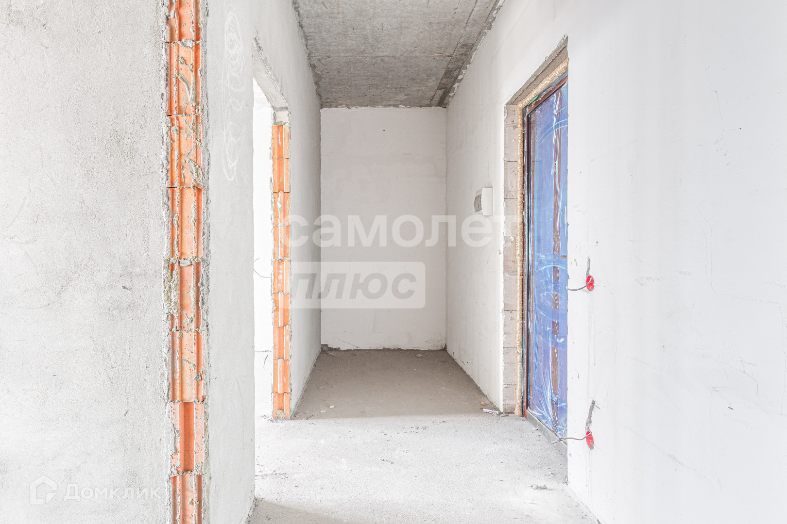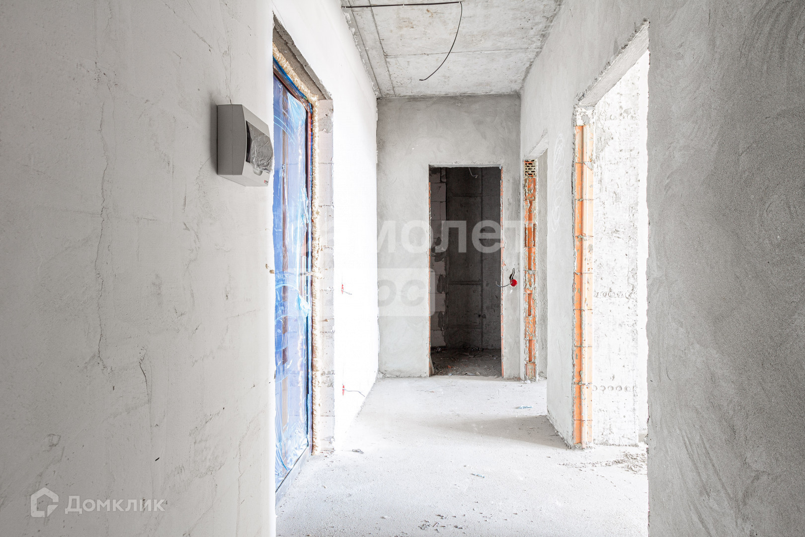 Стяжка пола. Отштукатурены стены. Выведены коммуникации.