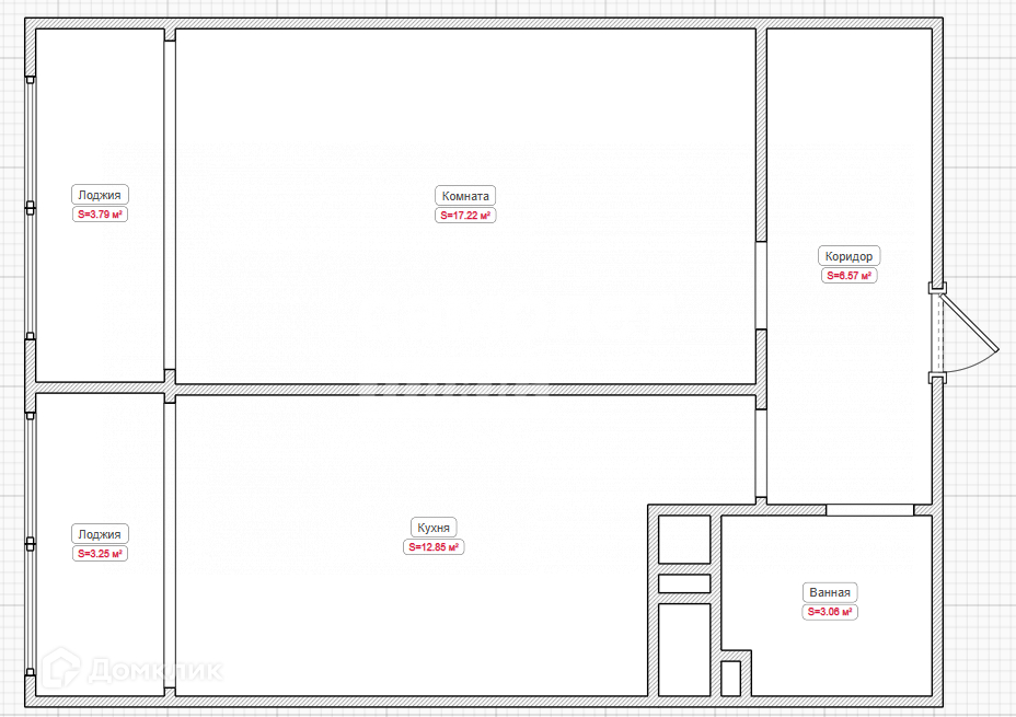 Площадь объекта 39,5м2. Высота потолка 2,7м. Кухня 12,85м2. Комната 17,2м2
