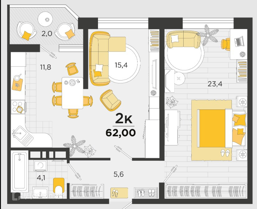 Общая площадь 62 м2