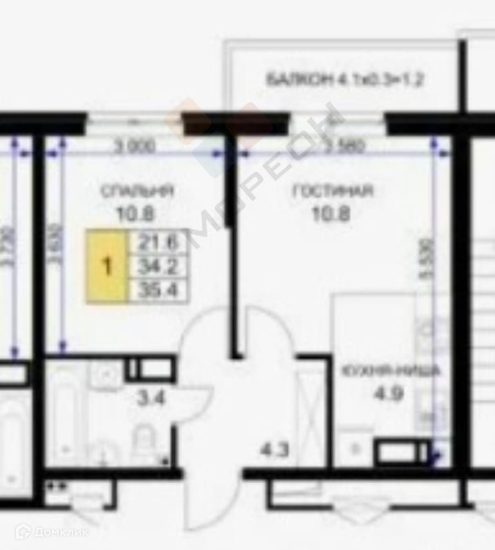 Балкон, лоджия 1 балкон