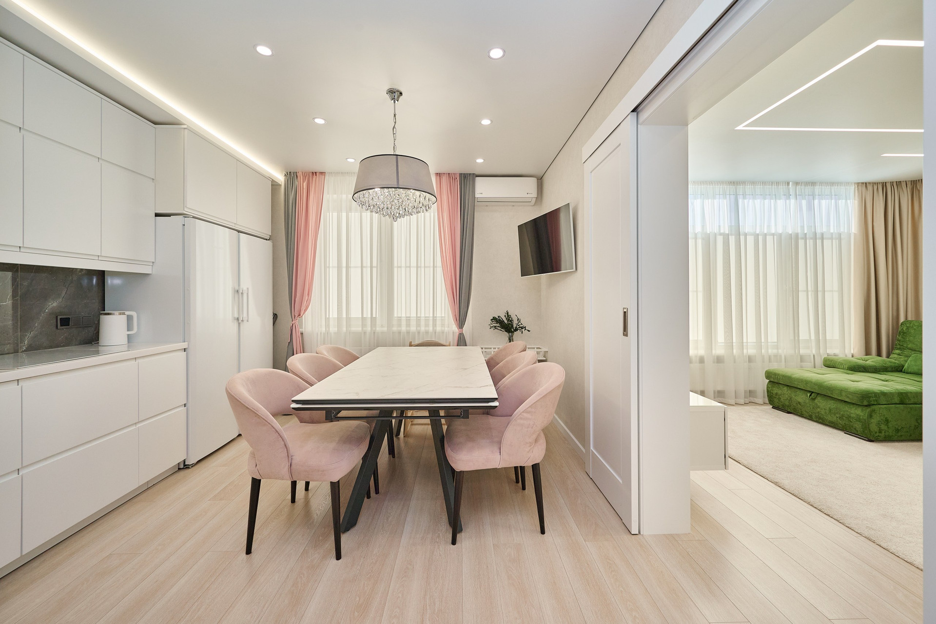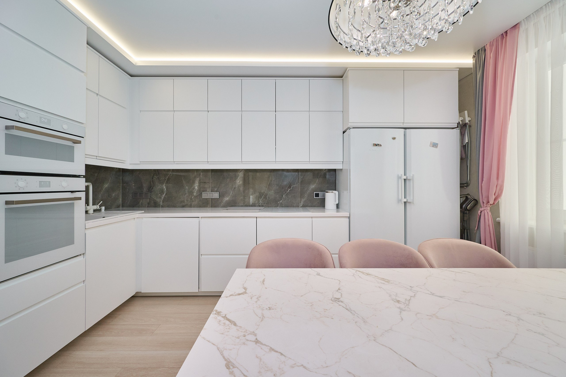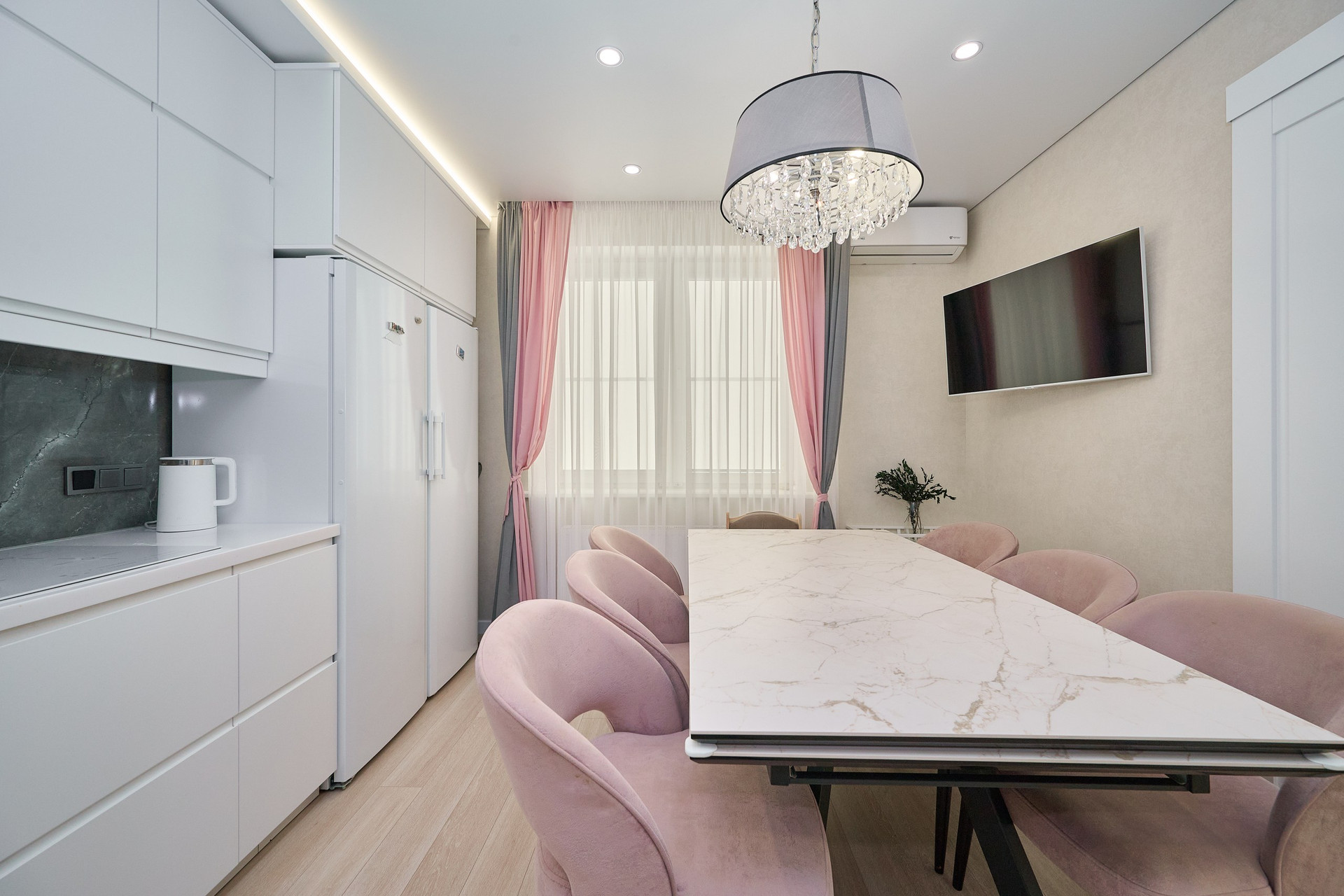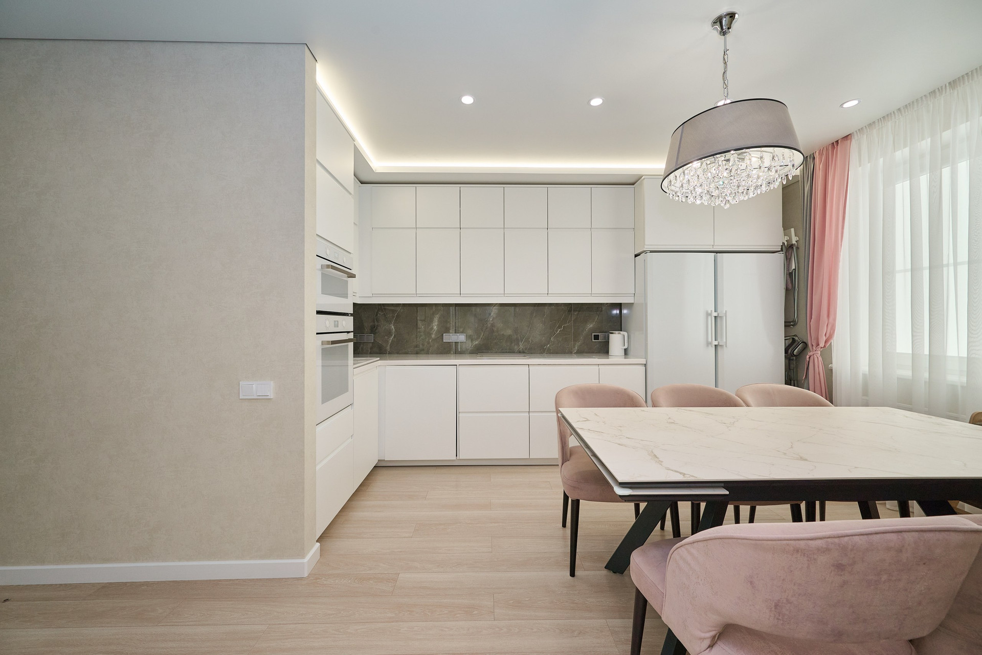 На техническом 24м этаже установлена индивидуальная система вентиляционно-вытяжного оборудования для санузлов, гардеробной и кухни. Она не сообщается с общедомовой вентиляцией, что полностью исключает проникновение нежелательных запахов извне. Работающая вытяжка на кухне не производит никакого шума и при этом работает гораздо эффективнее обычной.