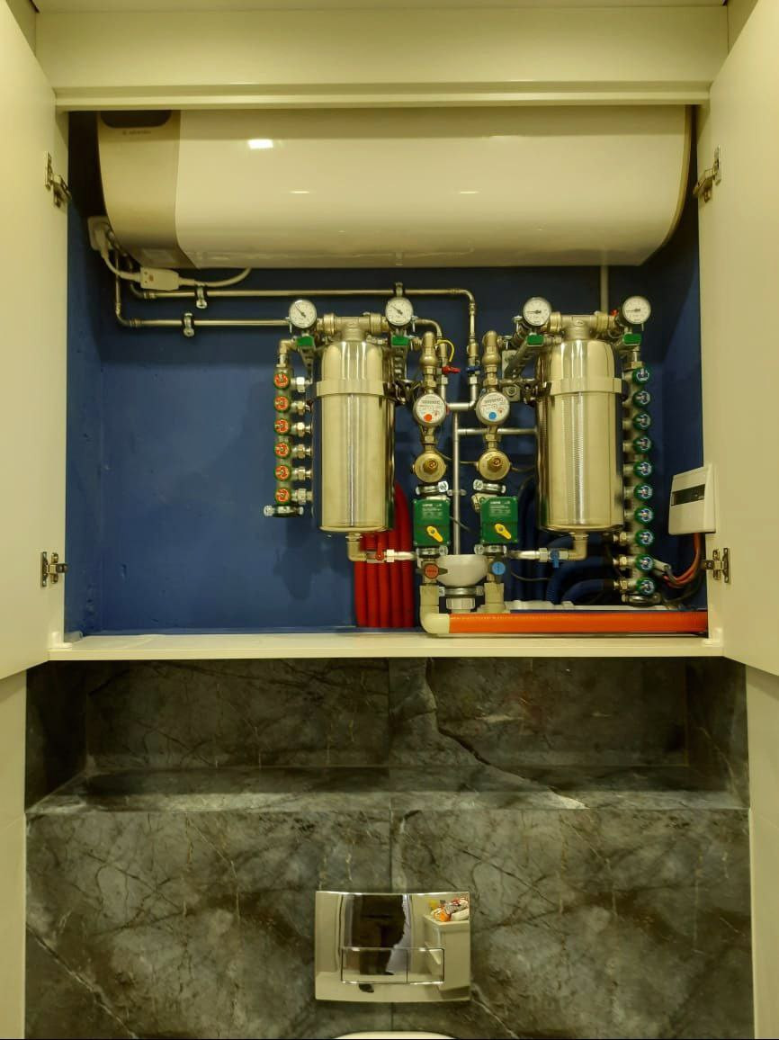 В квартире сделан качественный капитальный ремонт, перепланировка узаконена. Заменены все коммуникации, электрика, окна. Выполнена надежная коллекторная разводка, установлены фильтры, система «Нептун», накопительный водонагреватель, теплые полы в санузлах, заменена система отопления. Сплиты в каждой комнате.