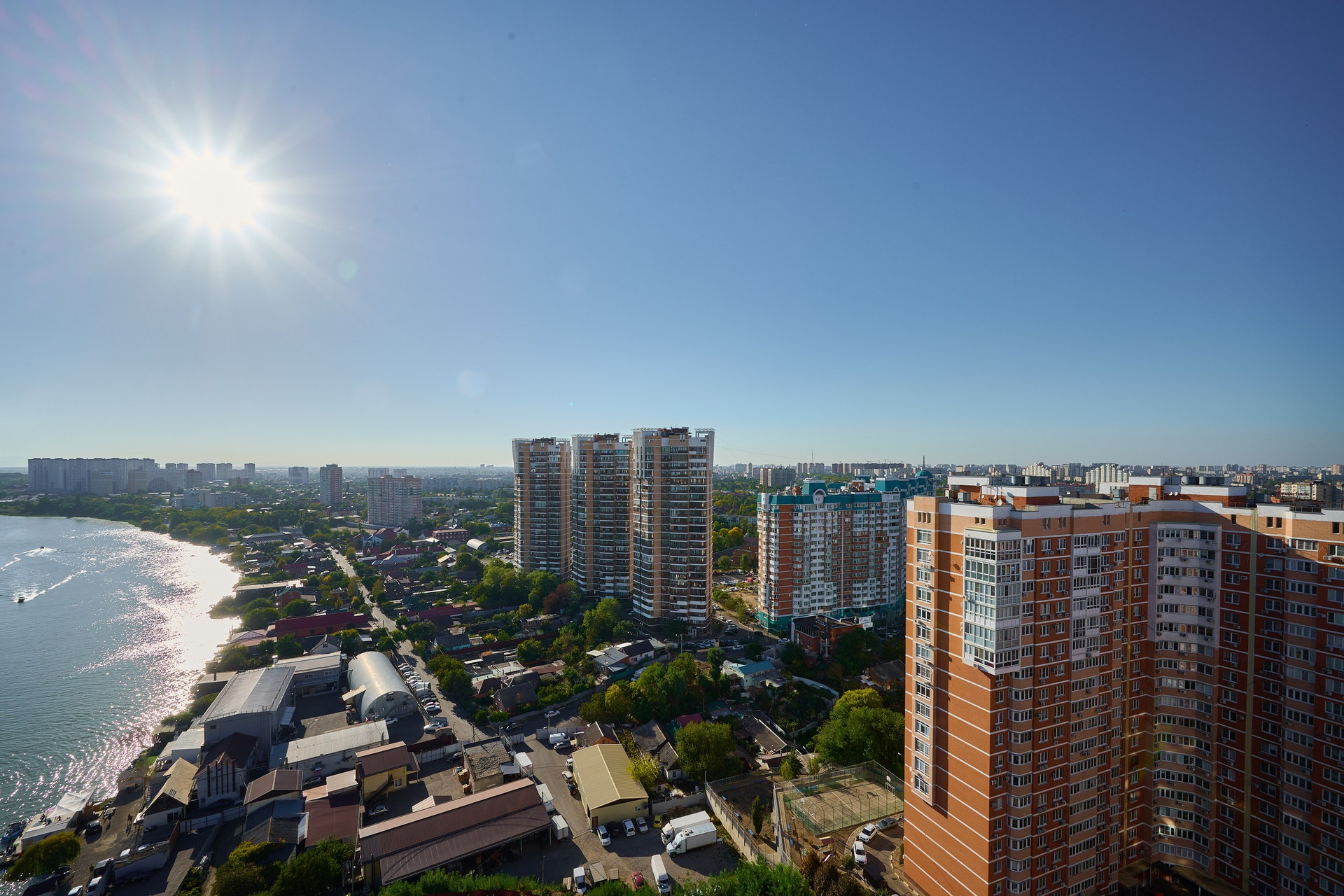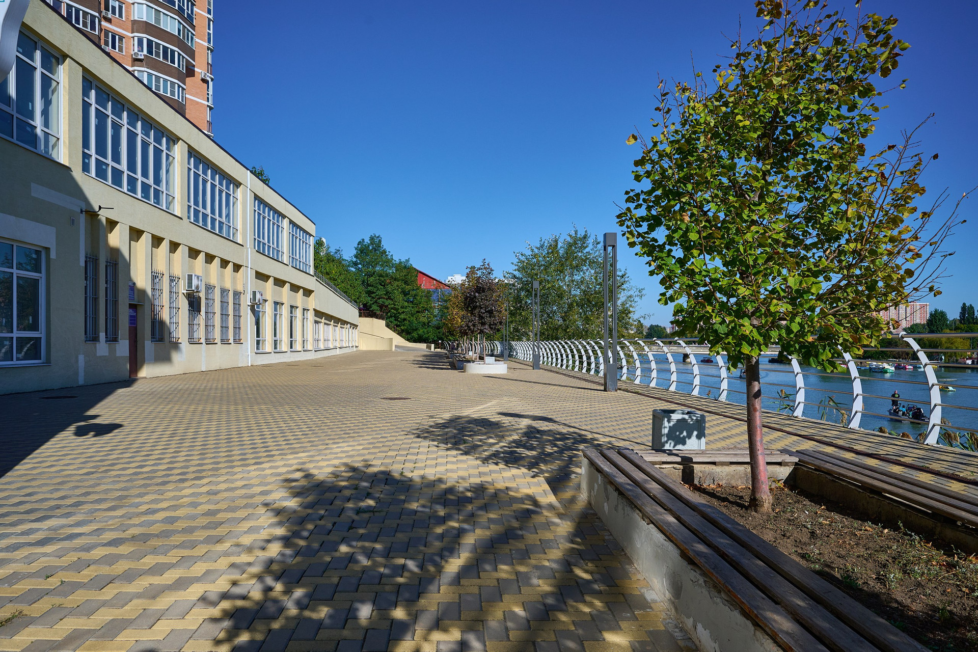 Охраняемая территория с детскими площадками, подземной парковкой и собственной набережной с видом на озеро Старая Кубань, Солнечный остров и Большой остров. Круглосуточный консьерж в подъезде, система видеонаблюдения в лифтах и на территории. Лифты надежные, работают всегда.