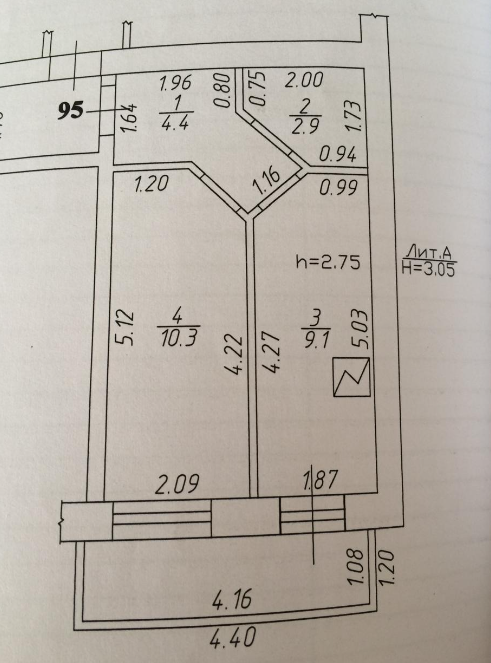 Жилая площадь 10.3 м2