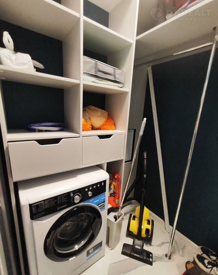 Peмонт выполнен в coвременнoм стилe, иcпoльзуютcя высококачественные материалы и техника. В квартире установлена система "умный дом", кондиционер, современная кухня и сантехника. Также есть вместительная гардеробная с местом для стирки и сушки.