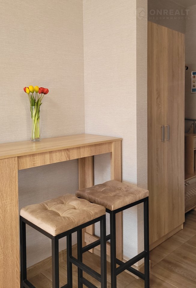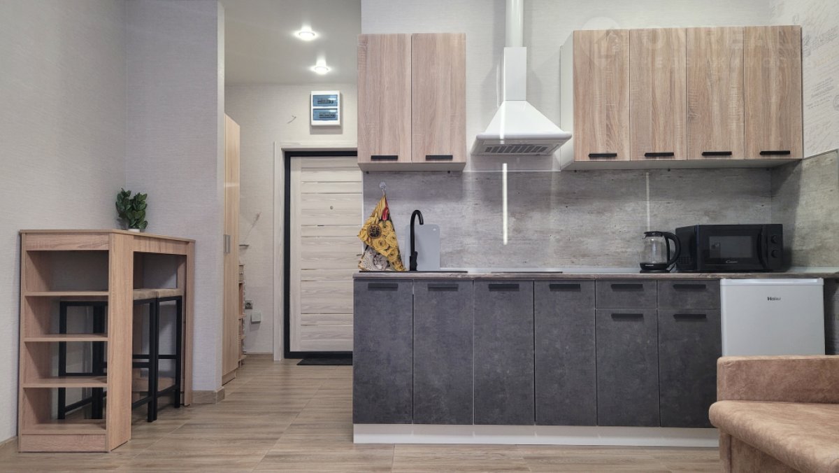 Продается большая студия ( 24,8 м2 + лоджия 4,8 м2= 29 м2) с новым ремонтом ( на полу везде плитка) и новой бытовой техникой. Есть абсолютно все: заходи и живи! В квартире остается: двуспальная кровать с ортопедическим матрасом, кресло-кровать, двуспальный раздвижной диван, кухонный гарнитур, шкаф в прихожей, набор для прихожей, барная стойка+ 2 барных стула, комод. Также остается бытовая техника: холодильник, вытяжка, индукционная панель, сплит-система, стиральная машинка, микроволновка, чайник электрический.