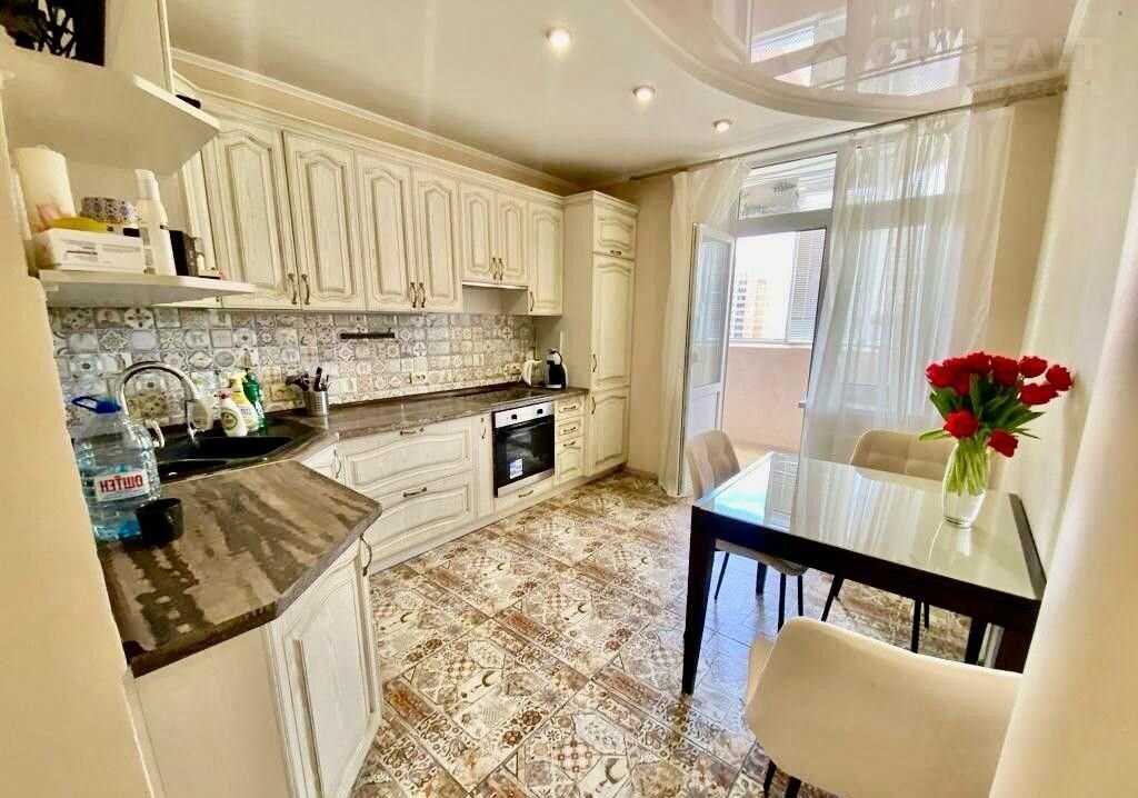 Качественный дизайнерский ремонт из дорогих материалов, кухонная мебель с встроенной техникой , натяжные потолки с двухуровневым освещением. В гостиной- стенка, диван и шкаф-купе( гардеробная). Вся мебель и встроенная техника в квартире остаются по договоренности. Квартира в отличном состоянии, не требует ремонта.