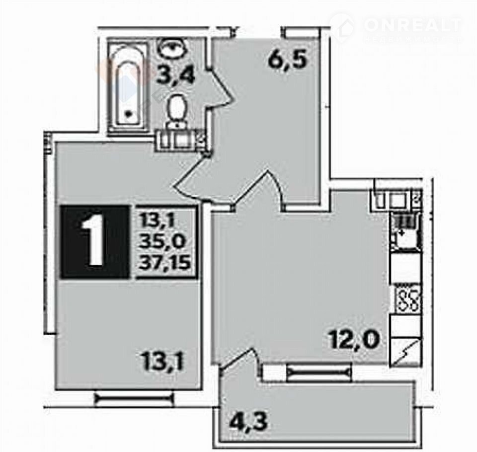 1-комнатная квартира, 35.7 м2, этаж 6 / 8, на продажу в Краснодаре, улица Западный Обход, 38/1к3