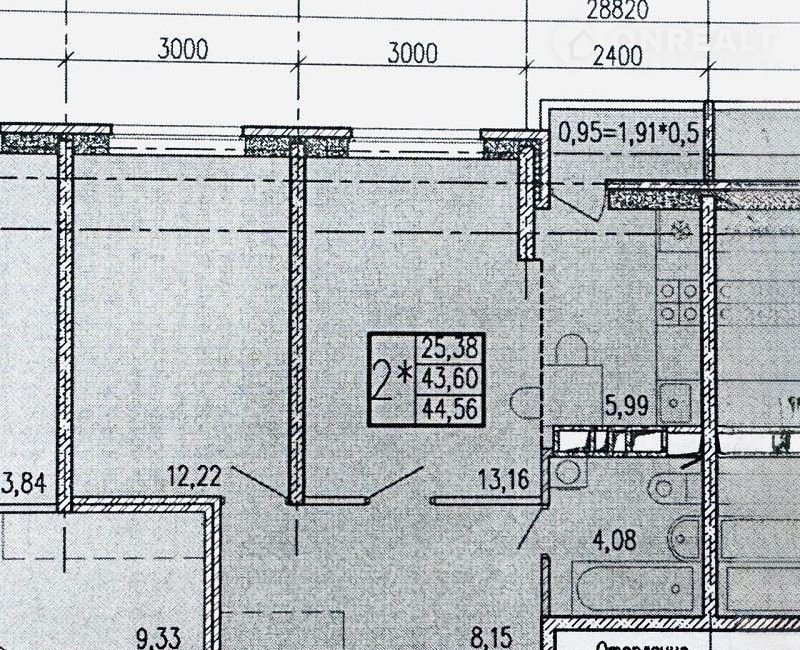 Жилая площадь 25.3 м2