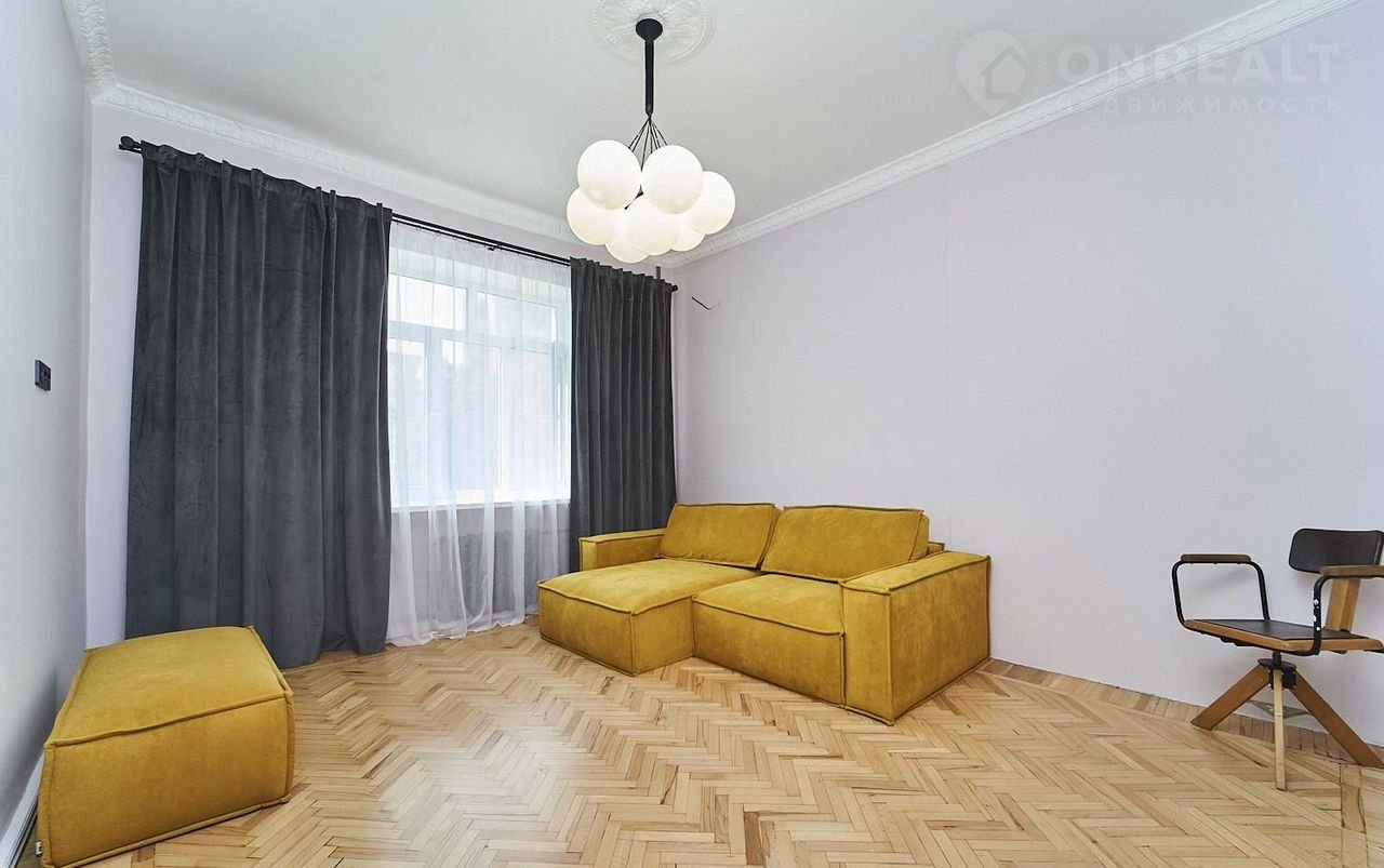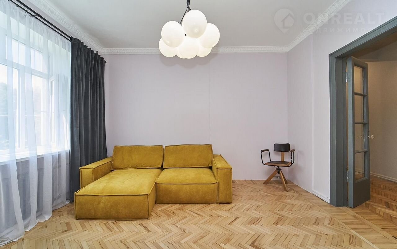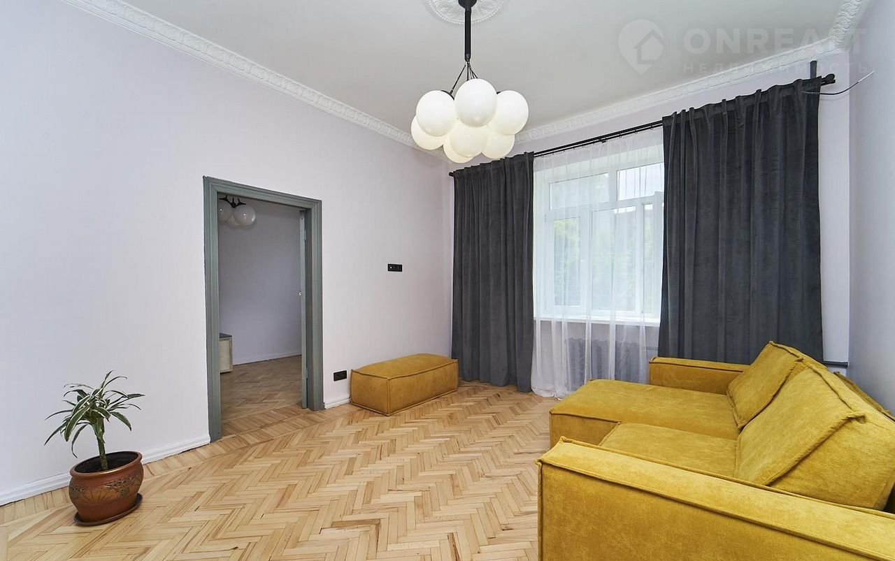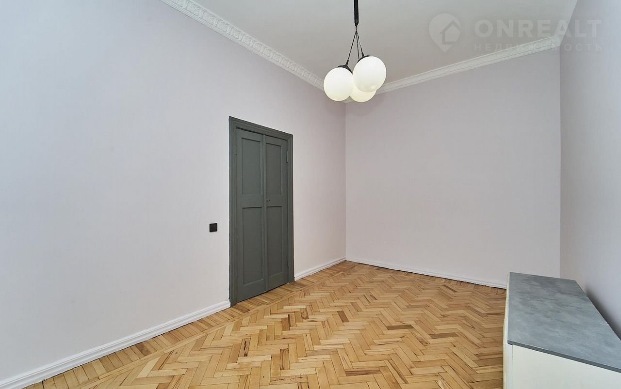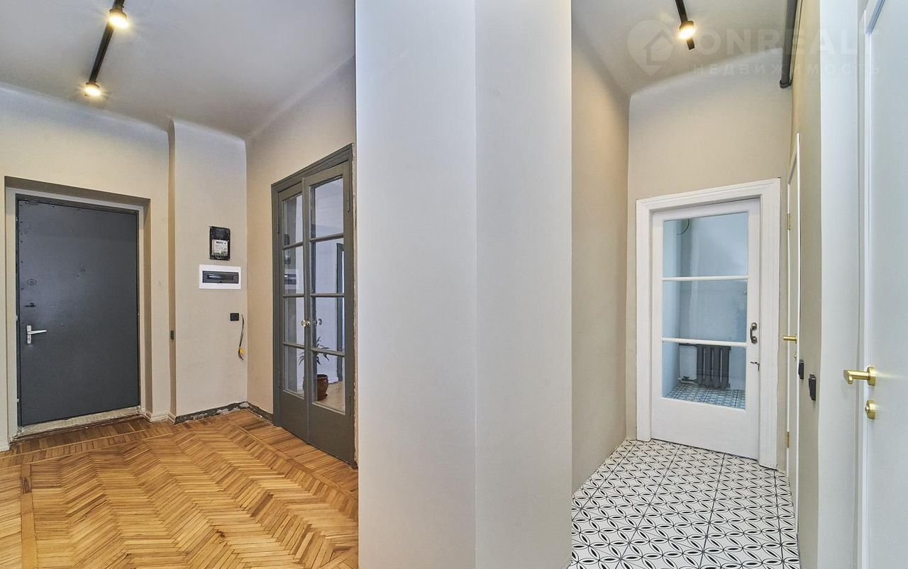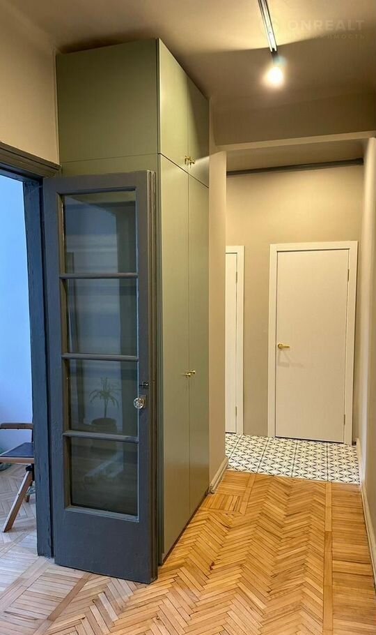В кваpтире сделан дизайнерский ремонт, современные материалы сочетаются с бережно восстановленными винтажными деталями - восстановлен паркет и двери. Также будут установлены шкафы и закуплена техника для кухни.