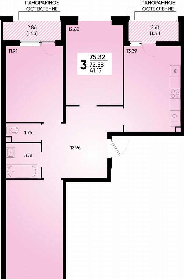Общая площадь 75.3 м2