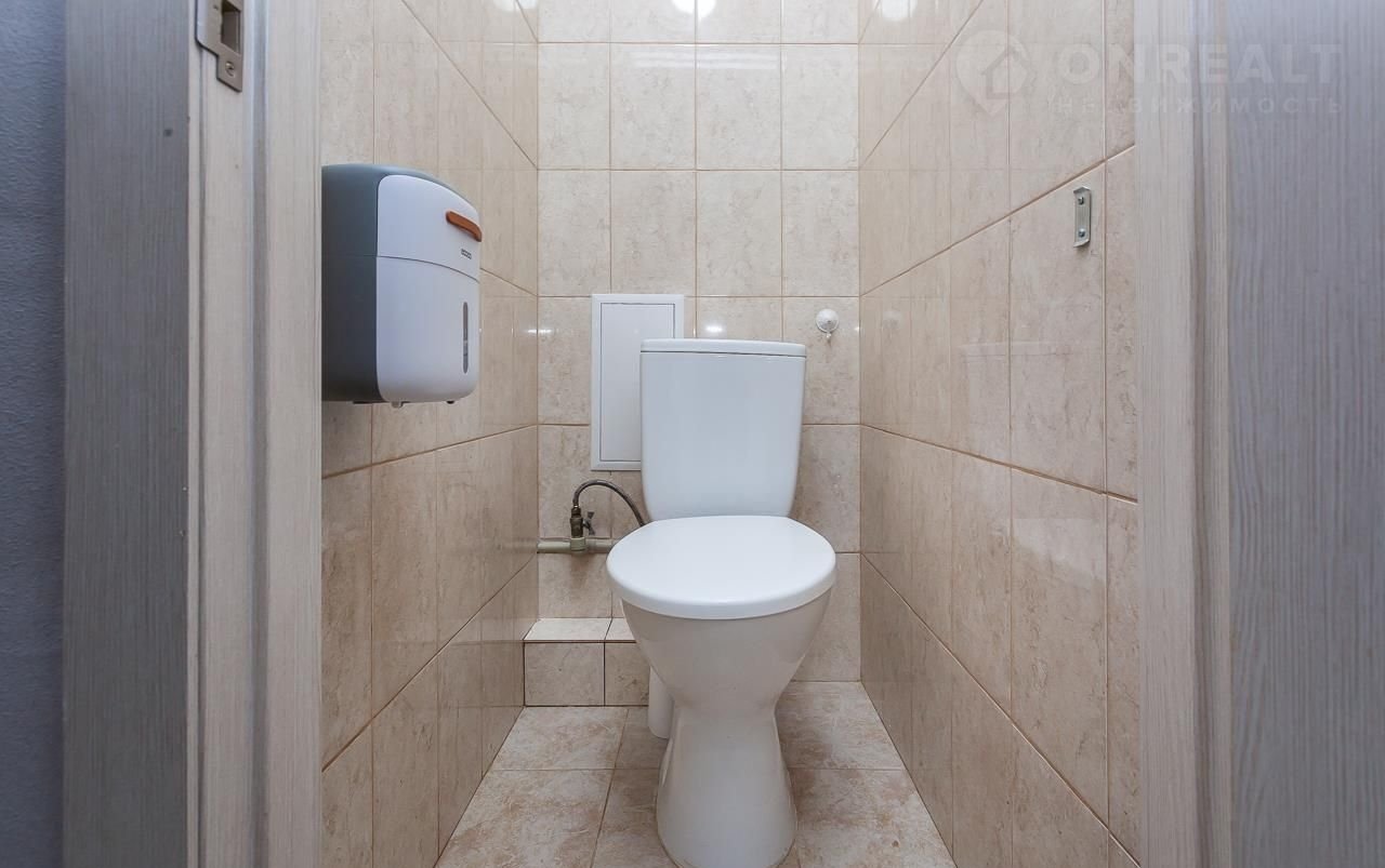 Раздельный санузел с практичной кафельной отделкой.