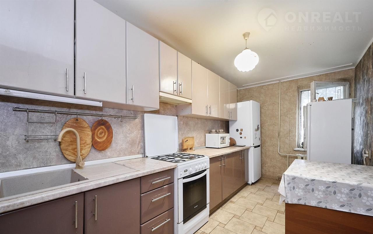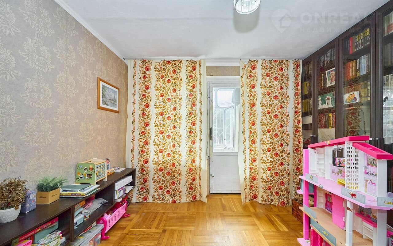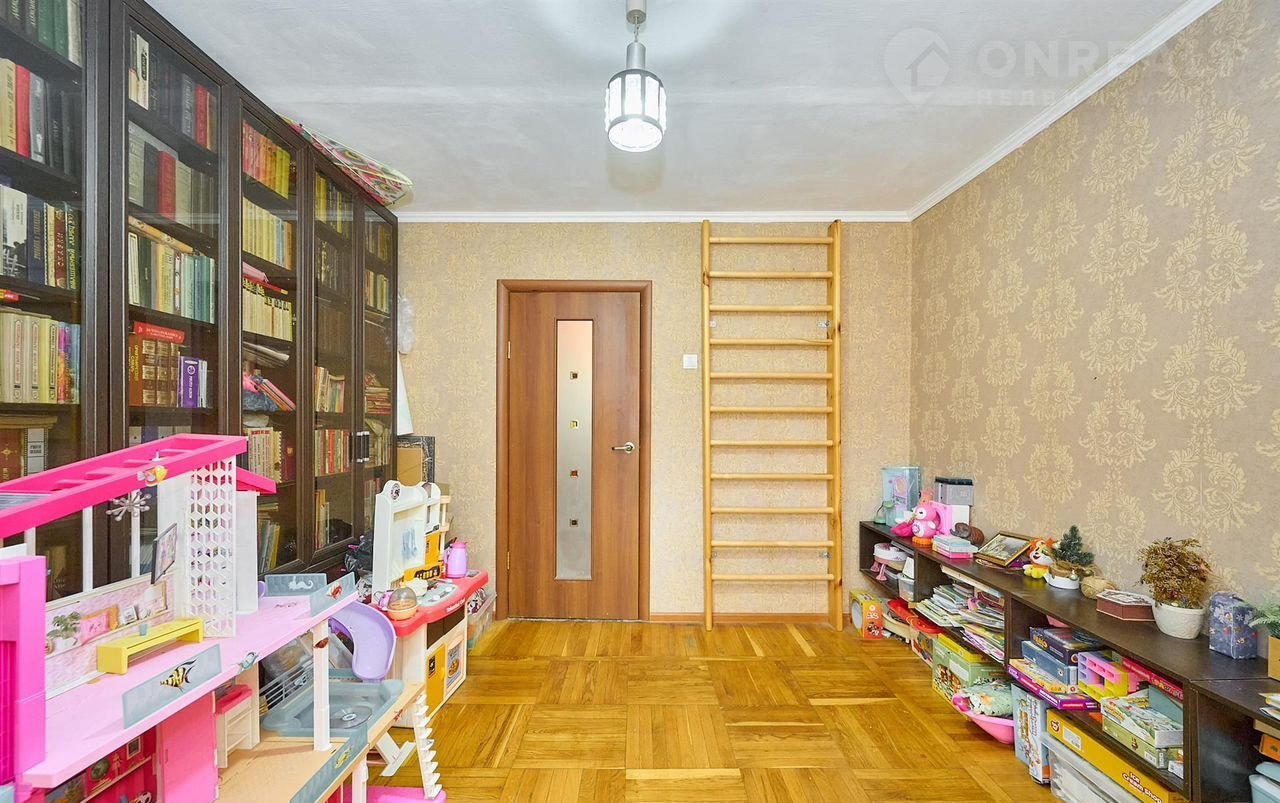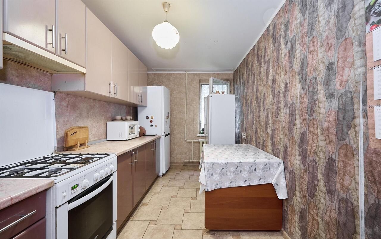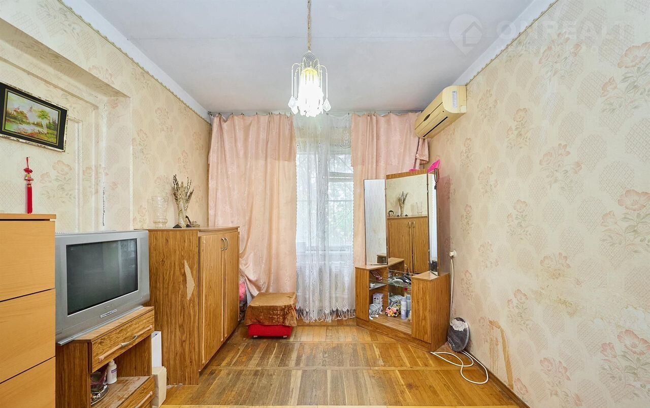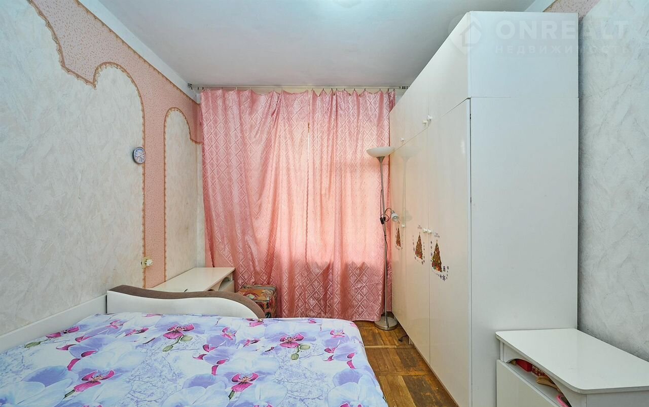 4 изолированные комнаты с косметическим ремонтом, 77.8 м.кв. На первом этаже пятиэтажного дома из кирпича. Есть лоджия на две комнаты и кладовая. В доме газ.