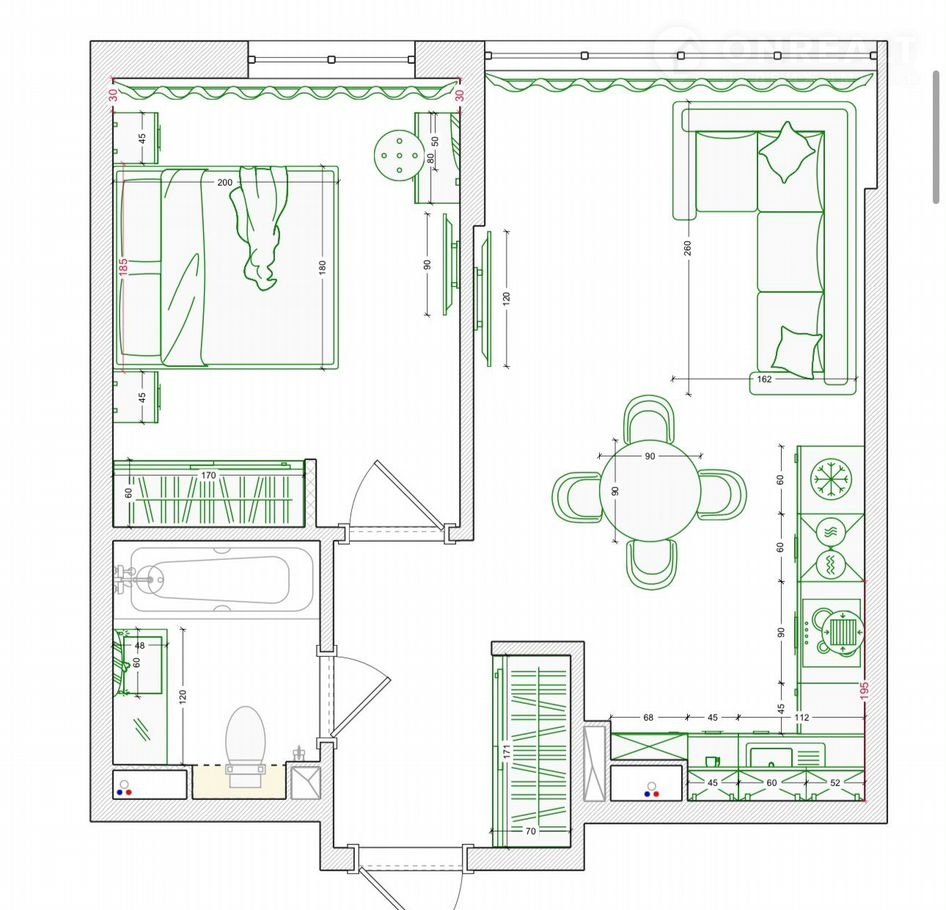 Общая площадь 37.1 м2