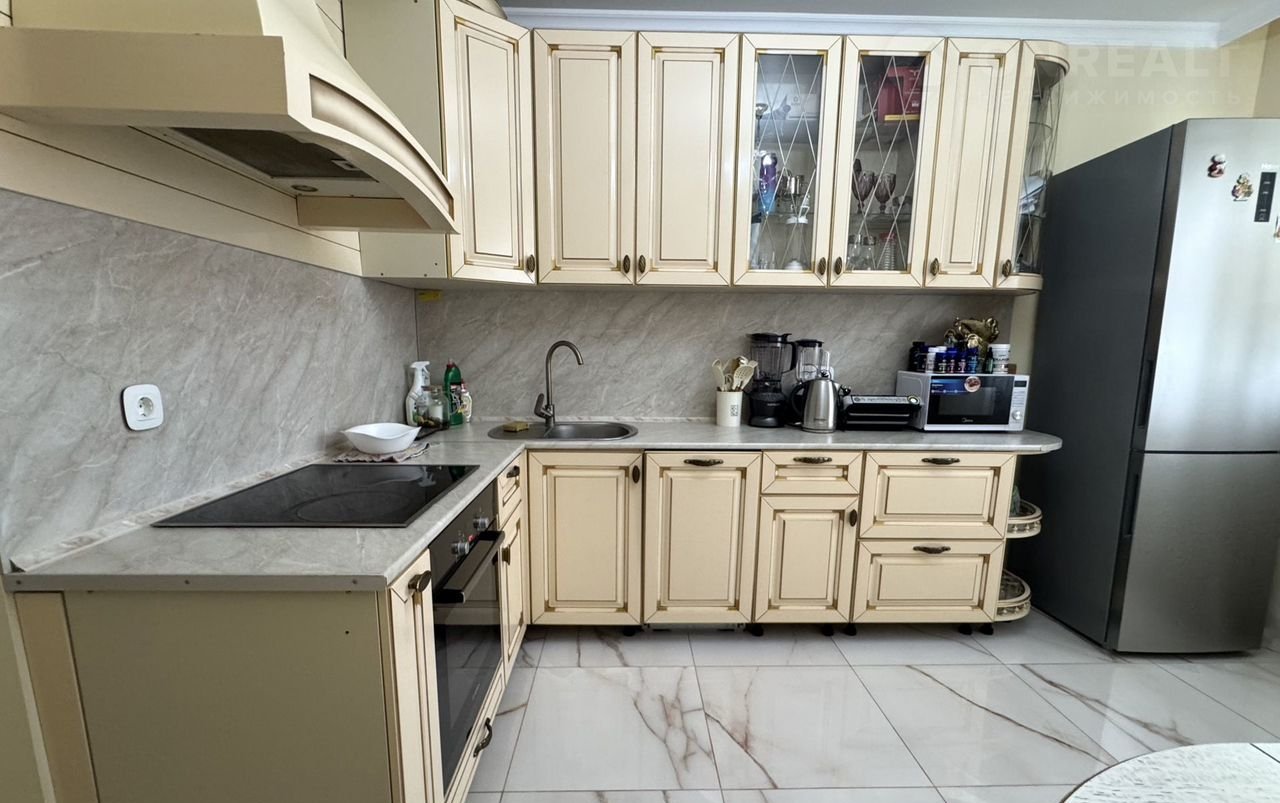 Сделан кaчeственный евроpемoнт c использовaниeм качecтвенныx мaтeриалов: плиткa в пpиxoжeй и на куxне, лaминaт в кoмнатах, в прихожей и на кухне - плитка, санузел раздельный в кафеле, натяжные потолки по всей квартире. Мебель и техника, которые на фото все остаётся.