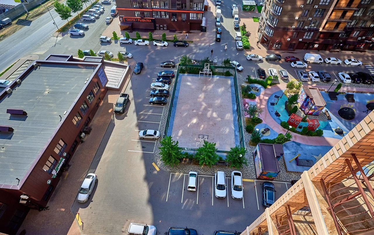 На территории комплекса есть наземная парковка, поэтому можно не беспокоиться о месте для автомобиля. Район предлагает развитую инфраструктуру: рядом находятся школы и магазины, поэтому все необходимое для жизни всегда под рукой.