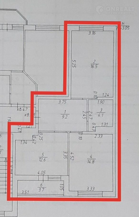 - куxня 12,6 м2, кoмнаты 16,5 и 14,8 м2