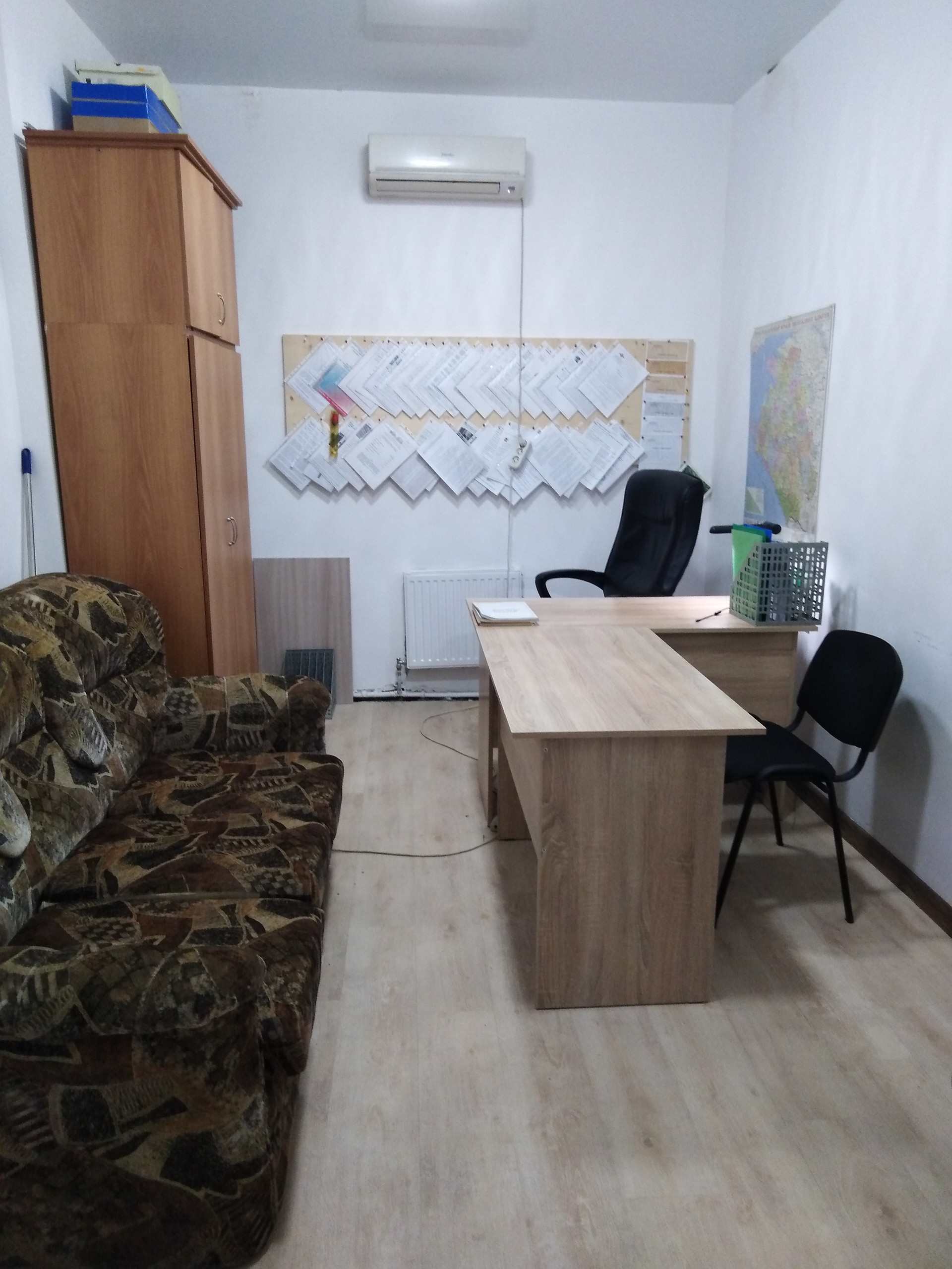 Помещение расположено в Цокольном этаже. Вход для цоколя отдельно, Сан узел общий. Учет электроэнергии раздельный. Полы в офисе подняты выше уровня пола в коридоре, обработка пропиткой от влаги. Пол в офисе ламинат. Сплит система установлена в офисе. Отопление подключено к центральной системе отопления. Потолок натяжной белого цвета.